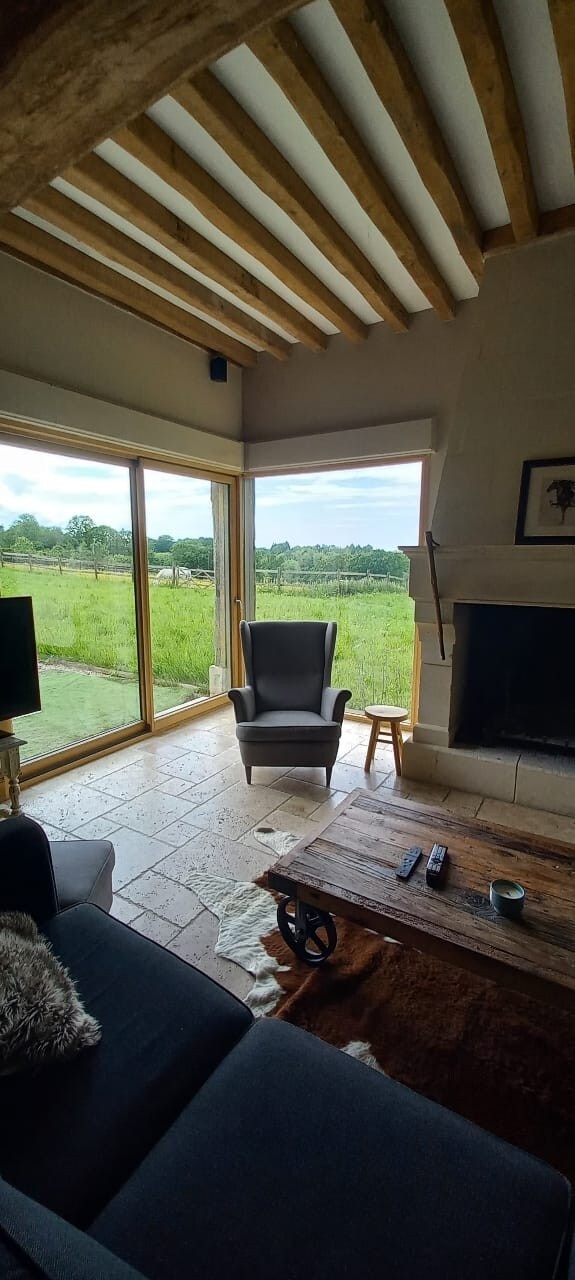 Estem situats a la Normandia rural, a França, a 500 metres d’un petit poble. El nostre allotjament consta d’una casa original i d’una casa més gran annexa. Vivim a la casa més gran i l’allotjament que s’ofereix aquí és la casa original. L’allotjament té entrada pròpia i està separat de la nostra casa per murs gruixuts de pedra. A la planta baixa hi ha una sala d’estar amb una cuina de cantonada i a la planta superior hi ha un dormitori amb bany privat. És una ubicació molt tranquil·la.