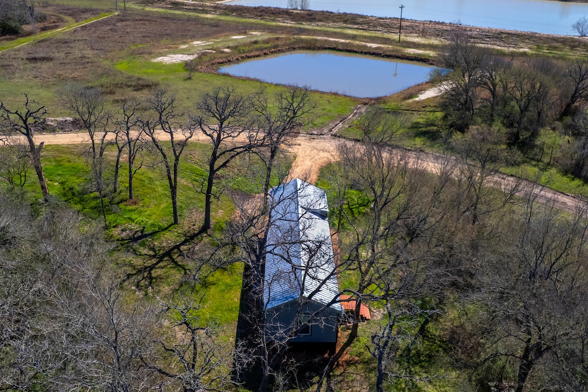 Et donem la benvinguda a la nostra casa d'escapada tranquil·la al camp! Situat darrere dels arbres i un estany, hi ha una vista espectacular i privada de 10 hectàrees. Una decoració senzilla i acollidora et fa sentir com a casa. Gaudeix d'un cafè fresc al matí al porxo, dona't un bany a la banyera d'hidromassatge, relaxa't al costat de la foguera i mira la posta de sol o allotja't a una nit de cinema al sofà gran de ceràmica extra gran. Amb Texas A&M a només 25 minuts, no et sents lluny del millor país i de la vida de la ciutat.