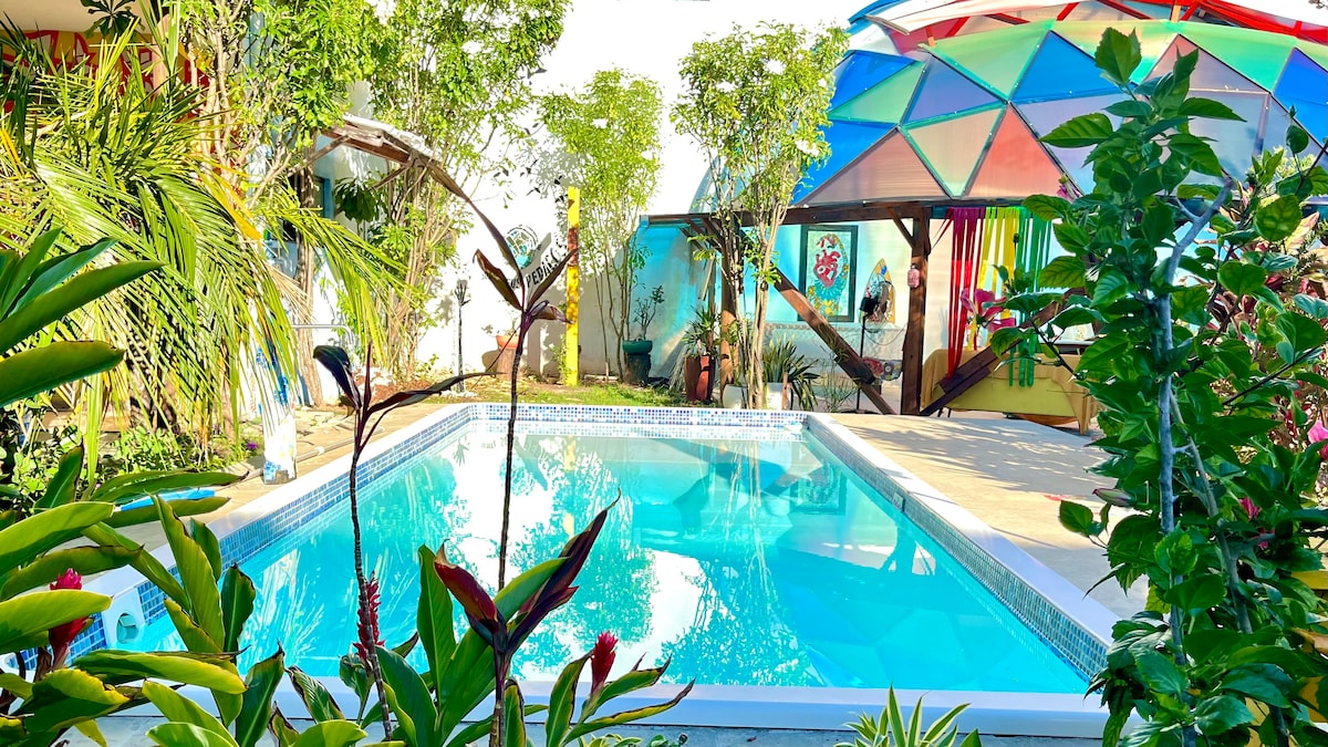 Hospedagem Experiência, Acomodação confortável, com decoração que passeia entre o rustico e o retrô, um Studio (praticidade em um único espaço), com uma área externa com piscina, mesa de sinuca, arte por todo espaço, rica em árvores, flores e passáros. Ficamos em Itacimirim, à cinco minutos à pé da maravilhosa Praia da Espera . Com indicações das melhores experiências ao redor. Obs.:A Praia de Itacimirim fica próximo a Praia de Guarajuba e Praia do Forte.