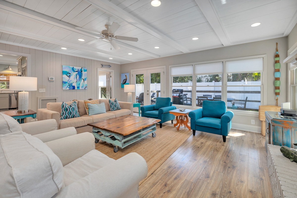 En realitat, a pocs minuts a peu de la platja! 3 dormitoris i 2,5 banys - Bonica tancada al pati del darrere amb una zona de pati coberta ,amb graella, kart de platja i cadires de tovalloles inclosos. Situat al cor de la popular comunitat de platja Restaurants, botigues, mercats i molt més! Bloqueja l'accés a la platja i a minuts de Village. Els hostes preferits de South End . Llits «king size» fantàstics i televisors intel·ligents als dormitoris Cuina totalment equipada. Un gran pati privat a l'aire lliure. Beach Restaurants Markets shopping in Popular Beach Community !