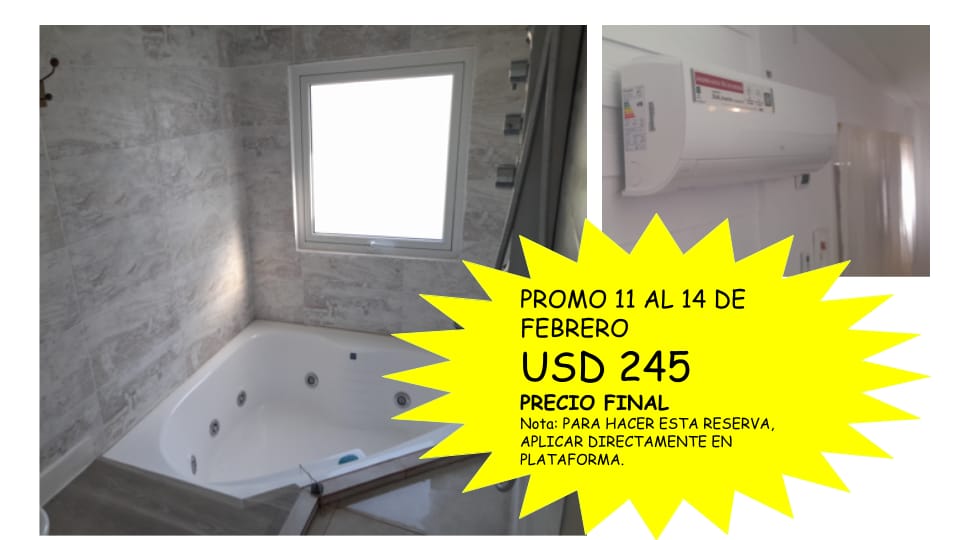 departamento monoambiente, hasta 4 personas. con cocina completa,baño,cama matrimonial y dos camas de una plaza. cuenta con pileta climatizada cubierta,super calentita. ideal para venir a relajarse y desconectar! a 1 cuadra de la playa y media del centro