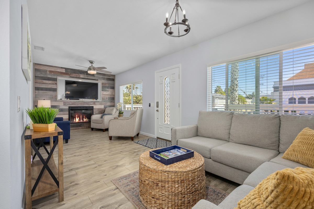 El teu elegant refugi al sud de Califòrnia t'espera! Aquest allotjament remodelat de 4 dormitoris té capacitat per a 8 persones i és ideal per a famílies. Gaudeix d'un pati privat amb banyera d'hidromassatge, piscina de vaquers i foguera. Situat a menys de 10 minuts del moll d'Oceanside i a poca distància en cotxe de LEGOLAND i de les atraccions de San Diego. Disposa d'una cuina totalment equipada, un espai de treball exclusiu i serveis per a famílies. Un lloc perfecte per explorar el sud de Califòrnia!