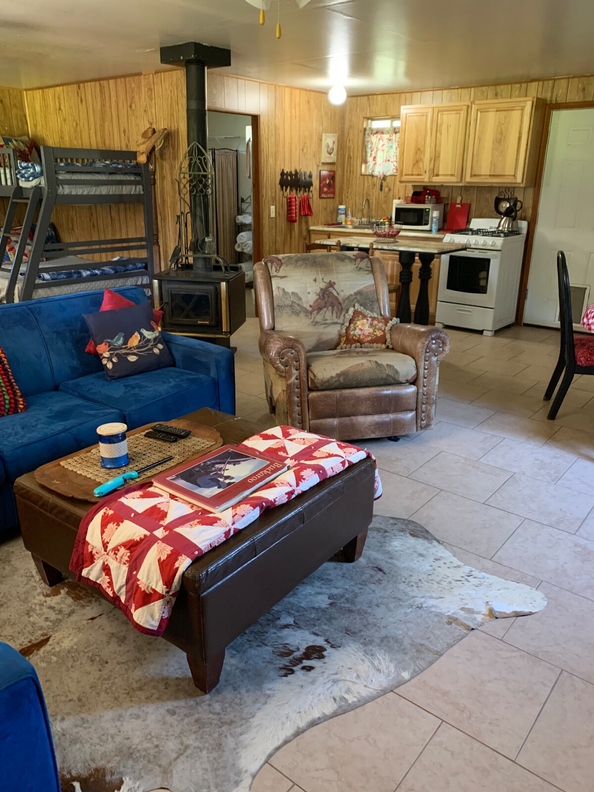 Aquesta acollidora caseta de cowboy al riu Verde es troba a pocs passos de fer caiac, observar ocells o portar el teu cavall i muntar els nombrosos senders al llarg del riu. Acollidor concepte obert d'una habitació amb banyera. Llitera amb part inferior queen i top doble més llit «queen» addicional. Sofà i cuna disponibles. Cuina petita amb nevera completa, estufa de gas amb forn, microones, cafetera. Gran porxo cobert frontal. Gran zona de barbacoa a l'aire lliure. Les mascotes són benvingudes.