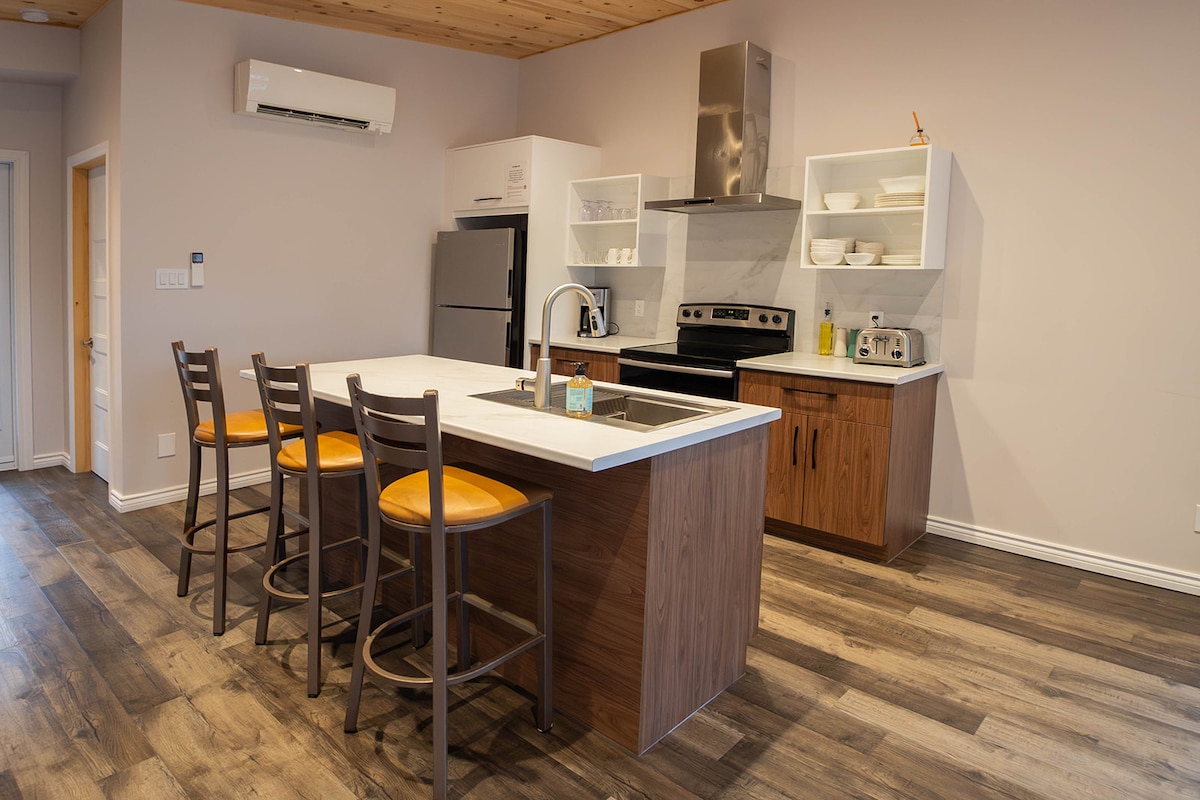 Et donem la benvinguda a la nostra moderna casa situada al cor de Campbellton. Aquest allotjament espaiós és perfecte per a famílies, grups o qualsevol persona que busqui una estada còmoda i amb estil. Dissenyat per a l'entreteniment, el nostre allotjament té dues sales d'estar separades, que ofereixen molt espai perquè tothom es reparteixi, vegi una pel·lícula, jugui o simplement es relaxi. A poca distància a peu de tots els serveis i a 2 km del parc provincial de Sugarloaf. Descobreix tot el que ofereix la zona. Tenim moltes ganes d'allotjar-te!