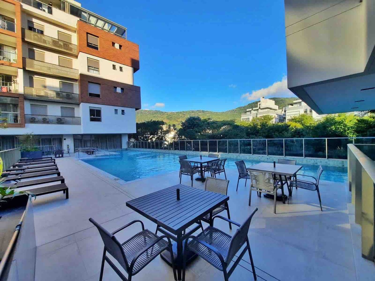 Relaxa't i gaudeix d'un complex hoteler de 5 estrelles a Jurerê Internacional. Desperta't, surt al balcó, mira la platja i la piscina, i tria on vols anar a gaudir del dia. I a la nit gaudeix dels bars i restaurants a només uns metres de distància. Aquest complex, al costat del mar, té recepció 24 hores, serveis d'hotel, roba de llit i bany, equipament (xampú, etc.), piscines exteriors i interiors (climatitzades), sala de jocs, entreteniment infantil, parc infantil, gimnàs i platja a pocs metres.