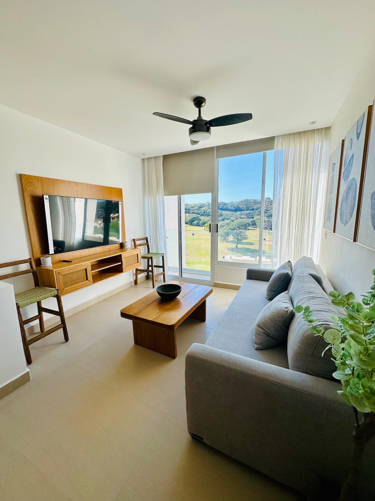 Acollidor i elegant, aquest apartament ofereix una estada tranquil·la amb vistes panoràmiques. La seva ubicació elevada, a prop de l'aeroport i dels serveis, la fa pràctica i segura. Disposa d'una habitació amb un llit «king size», un sofà llit i una hamaca, ideal per a tres persones. Disposa d'aire condicionat, televisor, wifi, escriptori, graella elèctrica, microones, batedora, planxa i rentadora-secadora. Situat en un carrer tranquil amb fàcil aparcament, amb ràpid accés a les principals atraccions.