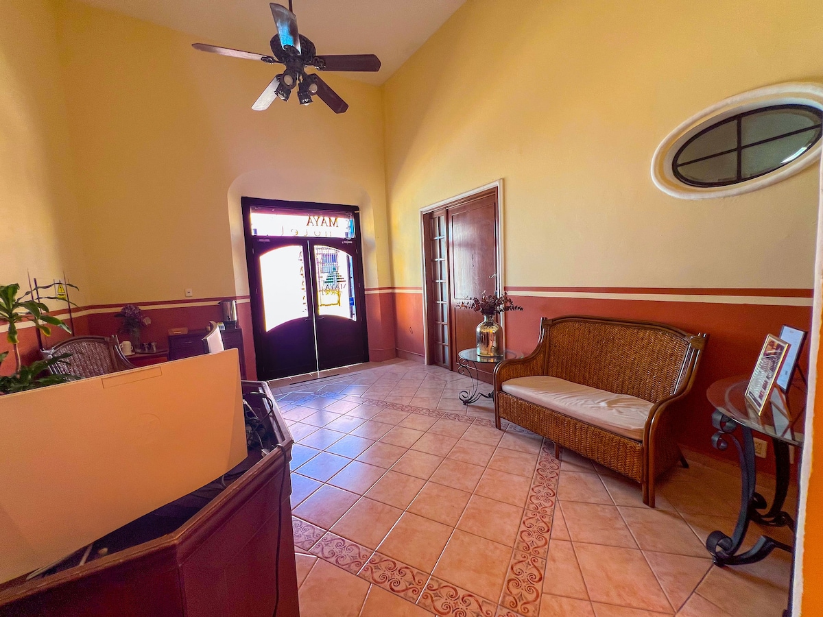 Preciós pis amb tot el que necessites dins d'un hotel boutique,a la zona més turística de Campeche. Gaudeix d'un fàcil accés a botigues i restaurants populars des d'aquest encantador lloc per allotjar-te.