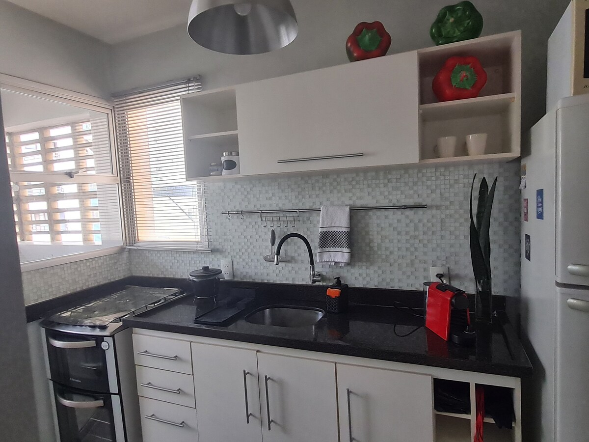 Relaxa't en aquest espai tranquil i elegant. Perfecte per a l'oficina a casa i/o una estada llarga a la ciutat de Campinas. Espaiosa de 60 m! Si us plau, sentiu-vos com a casa amb tot el que necessiteu per a la vostra comoditat. La porteria està oberta les 24 hores i els empleats t'ajudaran amb tot el que necessitis. El nostre garatge és gran i fàcil de maniobrar, fins i tot per a SUV. Si vols gaudir de la ciutat, pots caminar o deixar el cotxe al garatge al voltant d'Uber i evitar pagar l'aparcament!