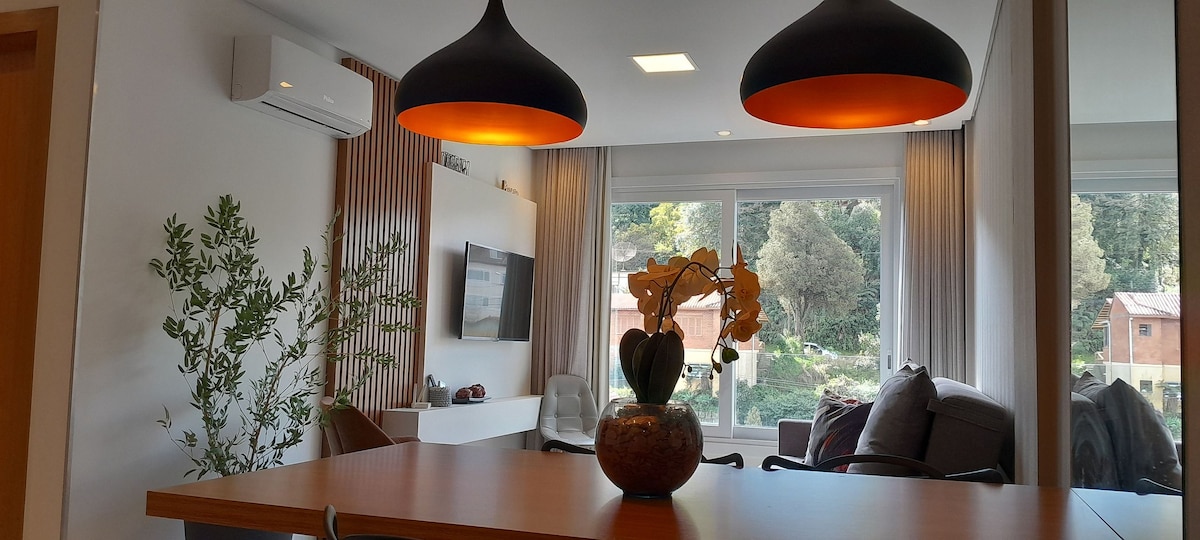 Aconchegante AP de 2 dormitoris en una de les zones més nobles de la ciutat, a prop del centre i dels principals llocs d'interès. Equipado i decorat d'acord amb l'estil de la Serra Gaúcha. Disposa de wifi, Smart TV, calefacció de gas i elèctrica, llar de foc, barbacoa, rentadora/assecadora, aire condicionat, cuina, llit i bany complets, garatge, tot de bona qualitat en un lloc tranquil i boscós i ideal per a famílies que busquen comoditat i tranquil·litat. Horari d'arribada i sortida flexible.
