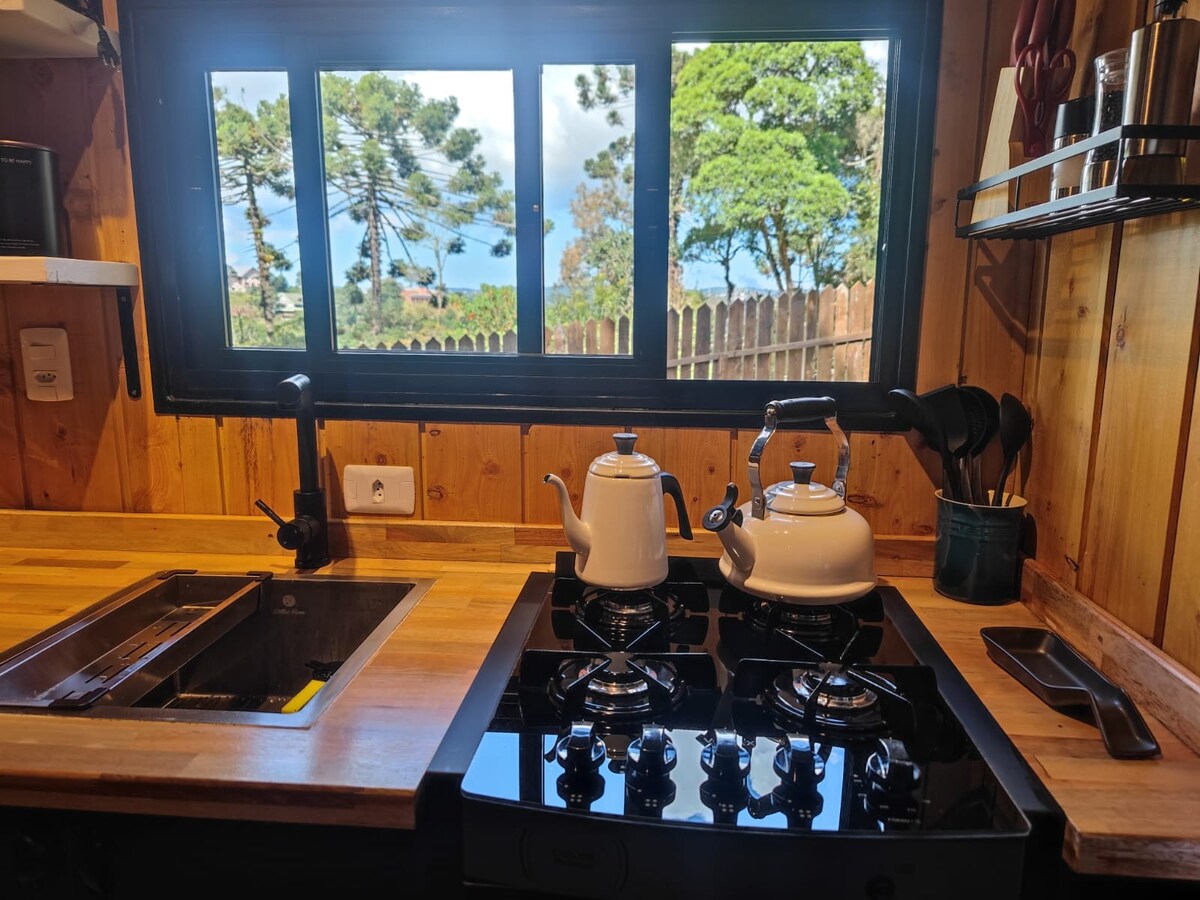 - A✅ 5 km del centre turístic - banyera d'immersió a l'habitació✅ -✅ 2 televisors intel·ligents - ✅ Cuina completa - ✅ Barbacoa - ✅Espai per fer-hi foc -✅aire condicionat (calor i fred a l'habitació) - ✅ tranquil·litat - ✅ Internet de fibra. El contenidor està envoltat de natura. Envoltada d'araucàries a 1657 m d'altitud en una de les zones més altes de Campos do Jordao, la caseta va ser preparada amb revestiment tèrmic i acústic. Com a part del viatge d'1 km de camí de terra. No hi ha menjar inclòs!
