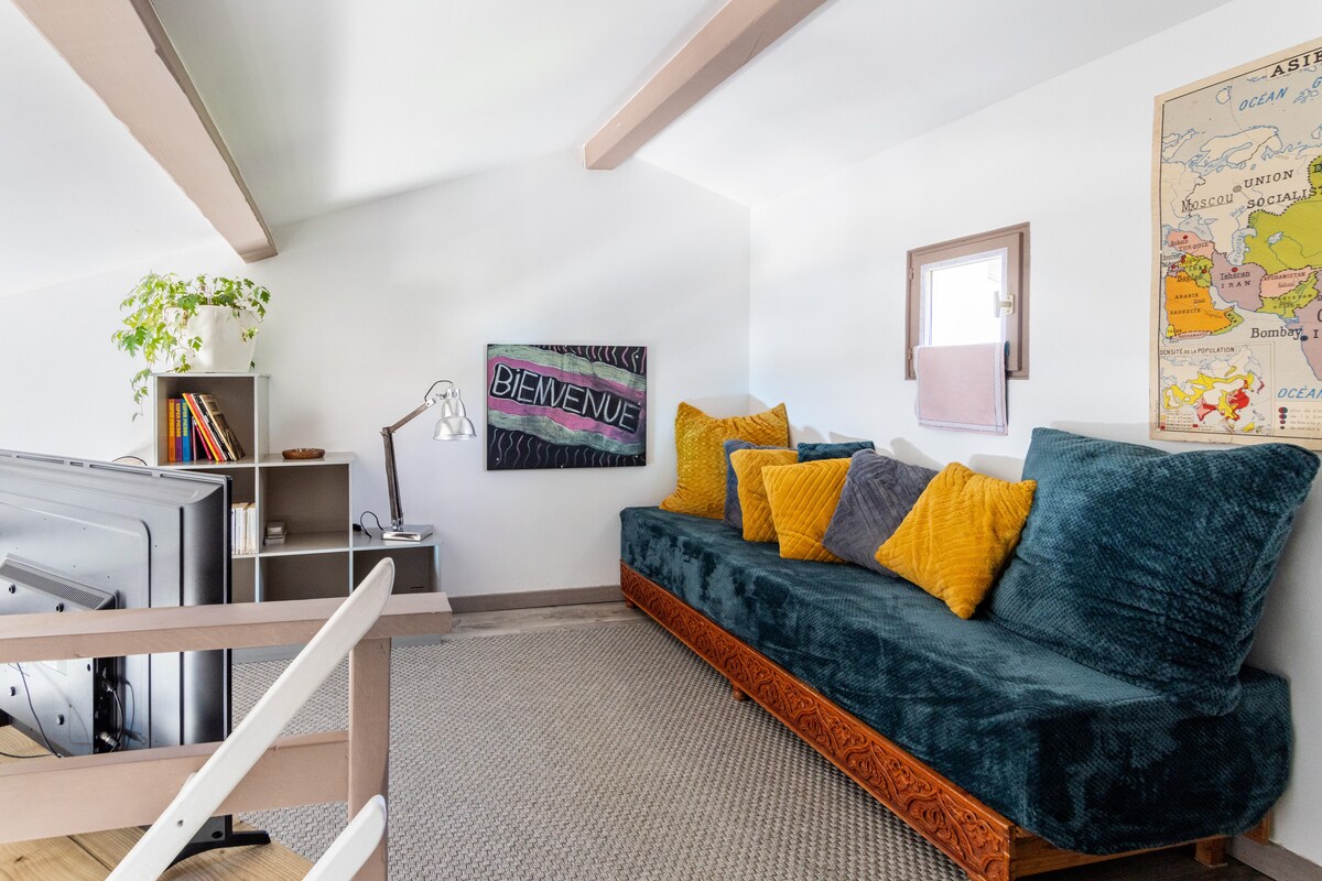Simplifica viure en aquesta tranquil·la casa i a prop del centre de la ciutat d'Agen, a 10 minuts a peu per la passarel·la i a 5 minuts del pont del canal. Aquest allotjament està annex a la meva propietat, tindràs accés independent a la meva. Pots aprofitar el pati exterior i la barbacoa a l'estiu. Estaré a la teva disposició durant la teva estada si cal. Llogo de diumenge a divendres. Si vols allargar les estades de cap de setmana, no dubtis a preguntar-me.