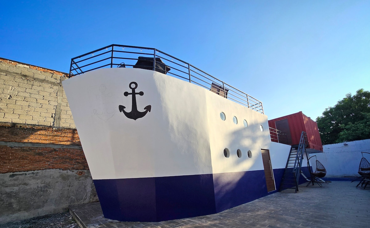 Descobreix la casa del vaixell de càrrega, un dels 100 guanyadors de la categoria Fora de sèrie d'Airbnb! Un fons que recrea la silueta d'un autèntic vaixell de càrrega. Aquí, el disseny avantguardista es barreja amb el confort modern i una ubicació immillorable a Veracruz: a només 13 minuts de l'aeroport, a 5 minuts de l'estació d'autobusos i a 10 minuts de la costa. Gaudeix de la seva piscina privada, una terrassa equipada per socialitzar i espais dissenyats per a un màxim de 12 persones per viure una escapada original i inoblidable.