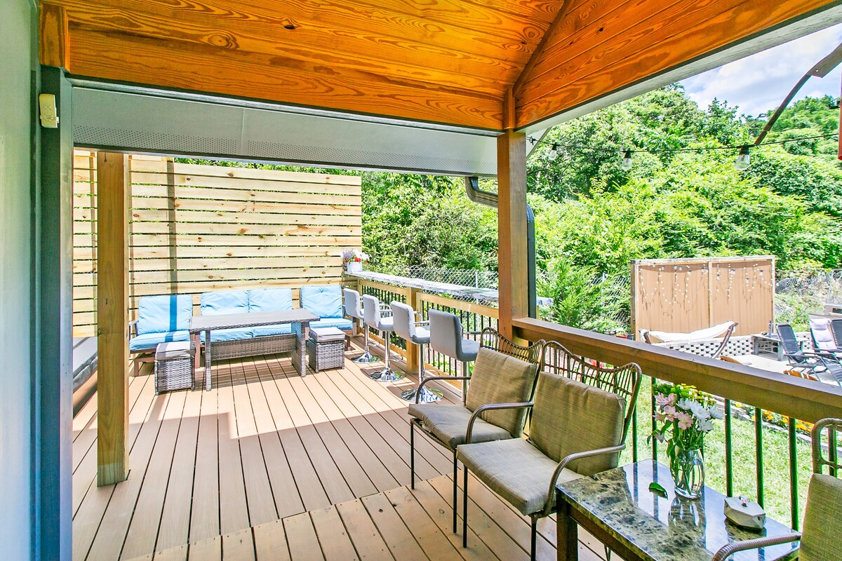 La Madera Madre: la "fusta mare" dona vida al viatger visceral i calidesa al viatger cansat. Instal·la't fàcilment a la teva llar lluny de casa, situat en un barri tranquil a només 5 o 7 minuts en cotxe del centre de la ciutat. Aquest bloc de somni privat és el centre ideal per a parelles, amics i familiars per explorar tot Asheville. Recàrrega't al llit Serta iComfort ® de gamma alta amb marc ajustable per gaudir d'una nit inmejorable! Cuina totalment equipada. Neteja professionalment!
