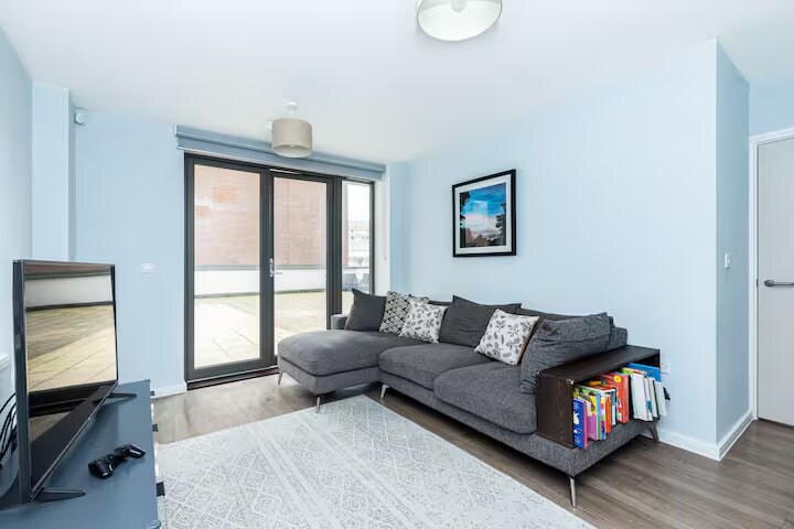 Aquest modern pis d'1 dormitori té capacitat per a 4 hostes i disposa d'un balcó privat, perfecte per relaxar-se després d'un dia a la ciutat. L'apartament inclou una cuina totalment equipada amb tots els elements bàsics per cuinar a casa, una zona d'estar còmoda i una televisió intel·ligent per veure els teus programes favorits. Ideal per a parelles, famílies o viatgers de negocis que busquen un allotjament còmode i ben situat a Londres.