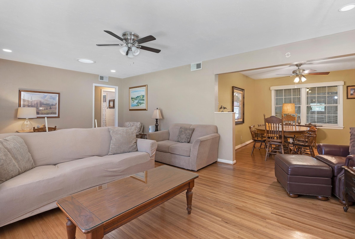 You won't believe this cute bungalow that is only one block from downtown! Newly remodeled two bedroom on a shady corner lot. Walk to your choice of several outstanding restaurants, a world famous coffee shop, boutiques, a great thrift store, an old-fashion soda shop, a book store, a pastry shop,and many other attractions. Canyon 's town square host many activities including a farmer's market, a movie night, parades, etc- all complete with many food trucks. Hosted by a local retired couple.