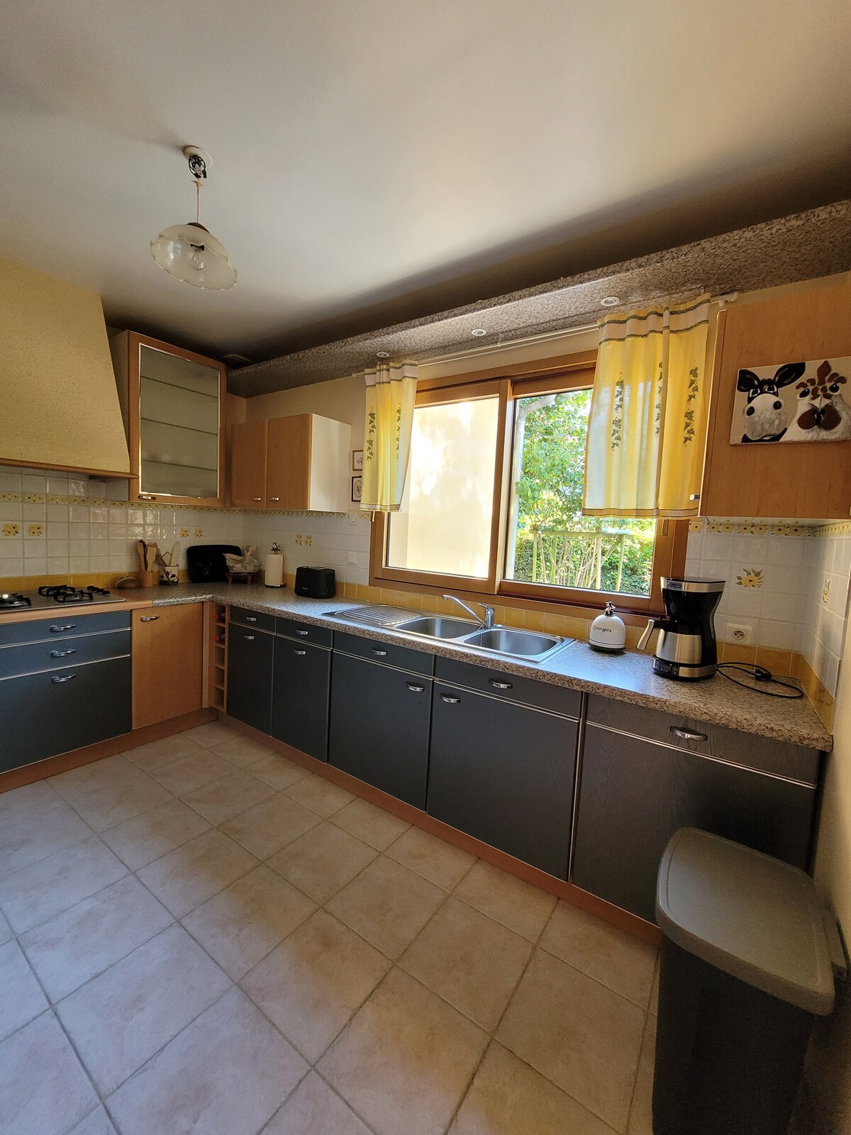 Gaudiràs d'una casa de camp familiar, reformada el 2020, en una finca de 2 hectàrees on viuen unes quantes ovelles i cavalls. La casa, típicament normanda, és molt lluminosa i dona al jardí. Dues terrasses, una de les quals és coberta, et permeten dinar a l'aire lliure fins i tot els dies que el temps és incert. 🧺 Neteja, roba de llit, tovalloles, draps de cuina i llenya*: INCLOSOS Tots els llits estaran fets quan arribis i la casa estarà climatitzada* (*en temporada). Wifi de fibra d'alta velocitat.