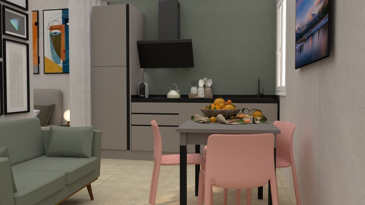 Pis de dues habitacions completament reformat dins d'un condomini a la quarta planta(amb ascensor) davant del bell moll de Porto Santa Margherita i consta d'un dormitori doble amb tercer llit, televisor de paret intel·ligent de 40 polzades,des d'un bany amb caixa de dutxa (100x80cm) i rentadora,des d'una sala d'estar amb cuina petita que inclou rentaplats,microones i cafetera Nespresso,sofà llit (140x190cm) televisor intel·ligent de 55 polzades amb canals de Netflix i alemany, ràdio per internet,wifi .