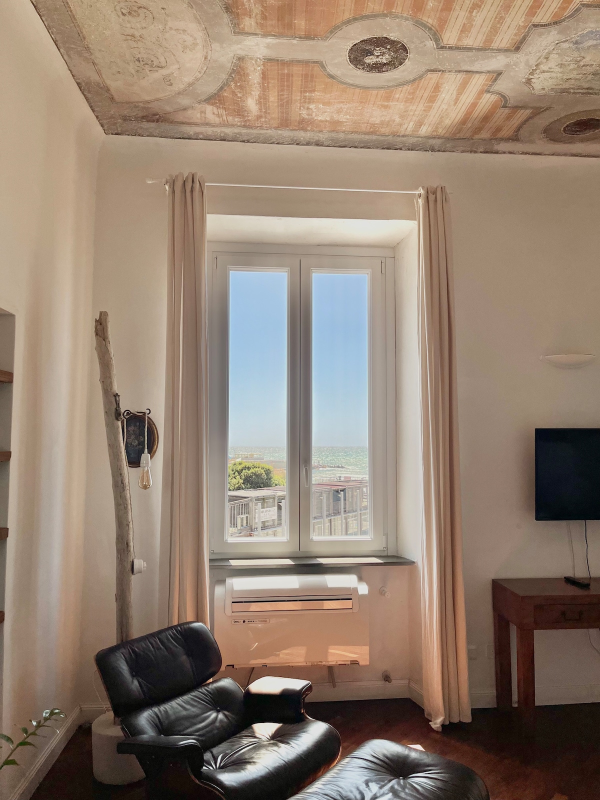 ***TINGUEU EN COMPTE QUE ES REALITZEN OBRES DE RENOVACIÓ DE LA FAÇANA FINS A L'ABRIL*** Amb vistes a la Terrazza Mascagni, un dels passeigs més bonics d'Itàlia, el Sunset Loft ofereix una vista impressionant de 180 ° del Mediterrani. Sostres amb frescos, terres de fusta, mobles acuradament seleccionats i grans finestrals amb vistes al mar: un espai elegant i lluminós dissenyat per fer-te sentir com a casa. Ideal per a una parella que vulgui descobrir Livorno sense renunciar a l'encant del mar.