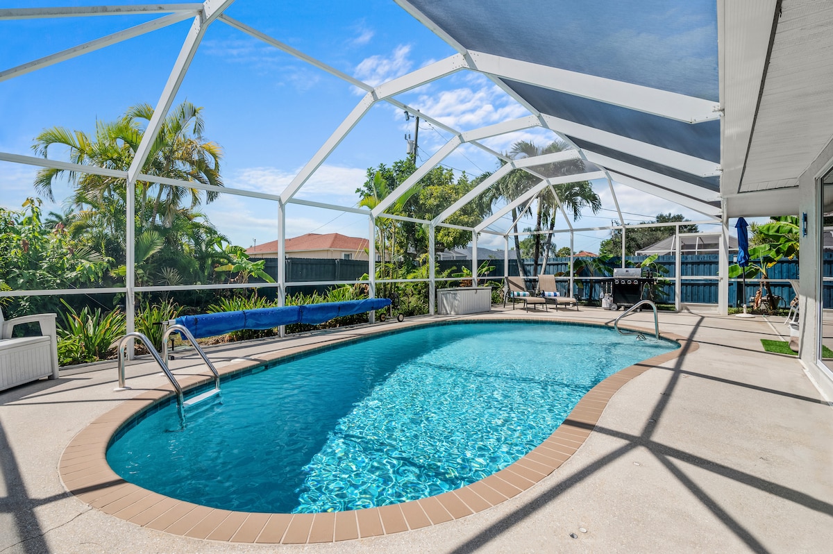 ★ Casa nova a la vora de l'aigua amb 4 dormitoris i 2 banys ★ Màxima puntuació en neteja i comoditat ★ Piscina d'aigua salada climatitzada i banyera d'hidromassatge ★ Lanai amb mosquitera + Barbacoa + Vistes al capvespre ★ Cuina completa i sala de jocs ★ Planta oberta i espaiosa: amb capacitat per a 12 persones ★ Pesca, foguera i menjador a l'aire lliure ★ Relaxa't sota les palmeres a la vora del mar ★ A minuts de Cape Coral Beach i restaurants ★ A prop de Fort Myers, Sanibel i Gulf Fun ✨ Vil·la Belleriva: on el confort, l'estil i el sol de Florida es troben per a una estada inoblidable al paradís.