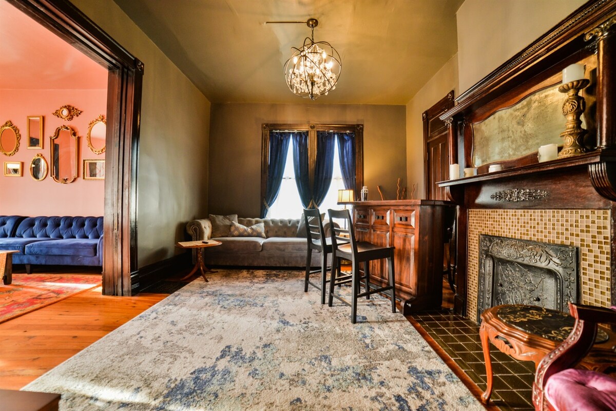 Aquest preciós apartament privat al pis de dalt es troba en un dels carrers preferits del districte històric del Cap Girardeau. Es troba a poca distància a peu de la Universitat SEMO, Capaha Park i la vora del riu del centre. Recentment remodelat per a la bugaderia, les habitacions espaioses ofereixen dormitoris privats i una sala acollidora per veure pel·lícules o llegir. La cuina està totalment equipada amb serveis. Aquest barri tranquil fins i tot té un columpi i una sala d'estar del porxo davanter on pots gaudir del teu cafè del matí.