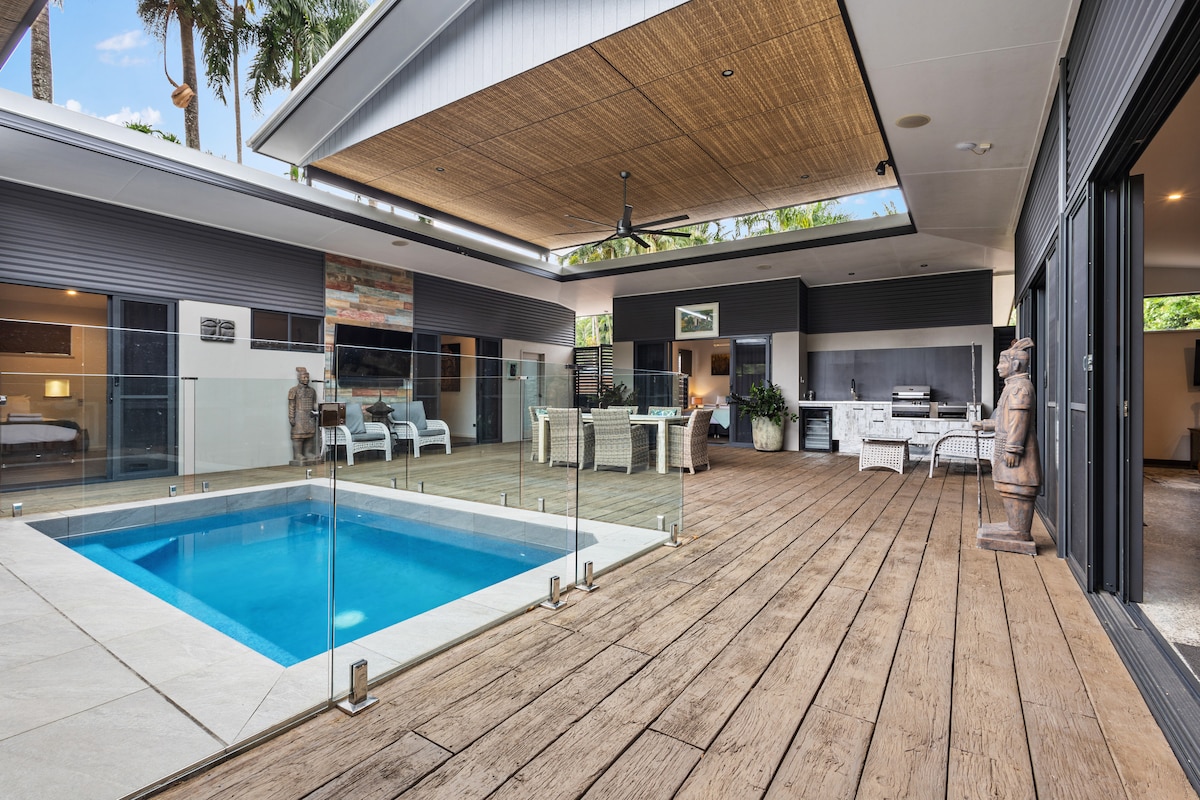 SPIRE és un refugi arquitectònic elegant i modern i perfectament situat a la finca Ocean 's Edge al costat de la platja, Palm Cove. Submergeix-te en pau i comoditat amb llum natural i brisa fresca que inunden totes les habitacions d'aquesta propietat. Dedica't a la piscina mineral cristal·lina o relaxa't al pati privat a l'aire lliure envoltat d'exuberants jardins ben cuidats. Només un petit passeig pel passeig marítim envoltat de la selva tropical mostrarà l'animada explanada de Palm Cove Beach a la porta de casa teva.