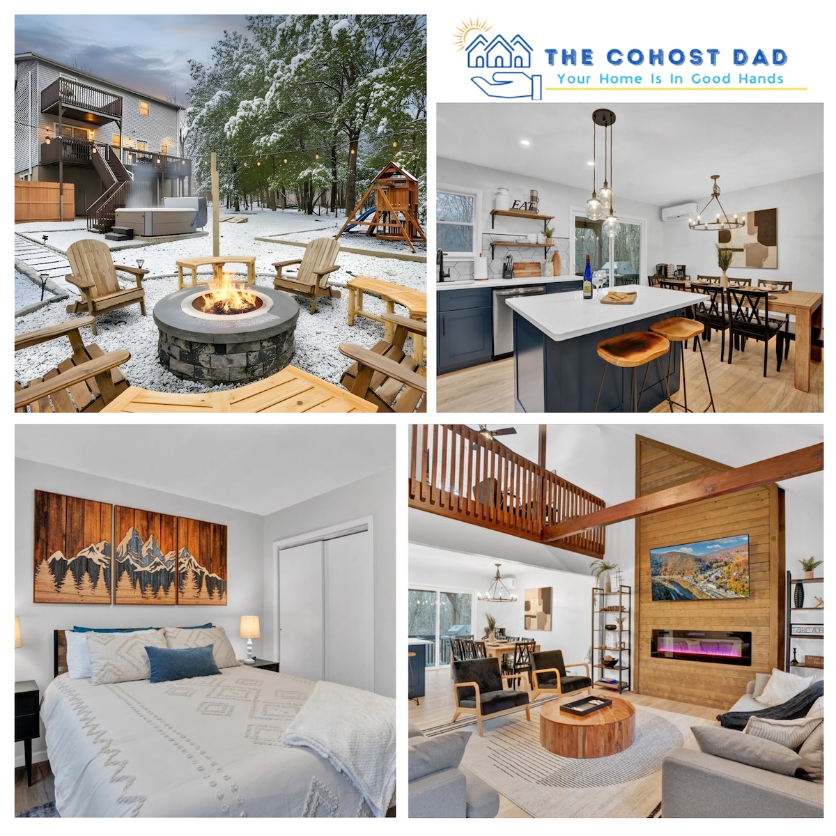 🔹 Top Amenities 🔹 🔹 Lake access (5-minute drive) 🔹 Hot tub & barrel sauna for ultimate relaxation 🔹 In-home movie theater with 85” Ultra HD TV & massage chairs 🔹 Custom cocktail bar + mini fridge 🔹 Shuffleboard, air hockey, dartboard & PS4 gaming loft 🔹 Spacious fire pit with Adirondack seating 🔹 7 bedrooms | 11 beds 🔹 Oversized dining table for 12 (plus additional seating for 6) 🔹 Fully stocked gourmet kitchen 🔹 AC & heat for year-round comfort