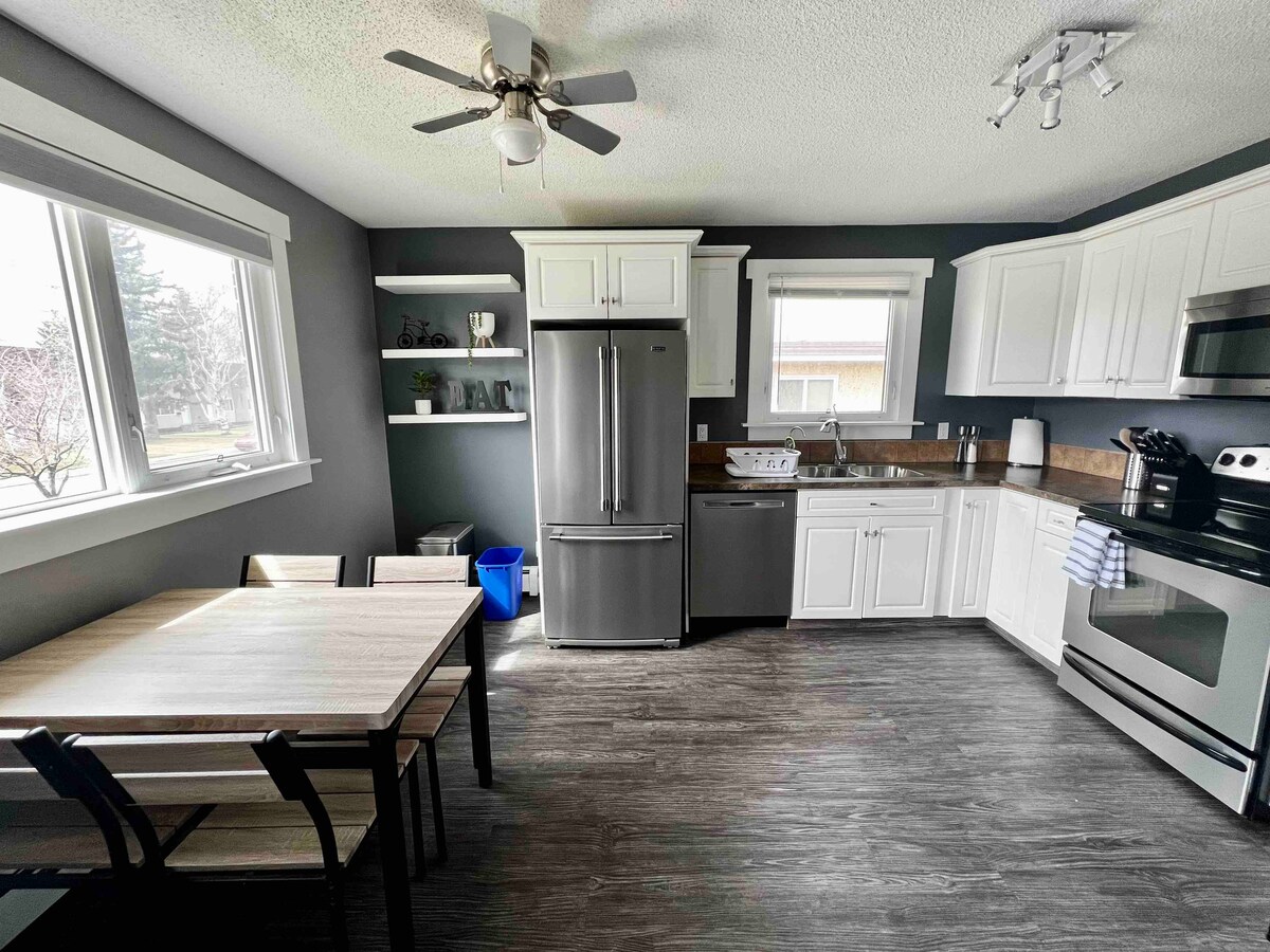 Relaxa't en una suite Lethbridge acollidora i espaiosa! Aquesta lluminosa suite de 2 dormitoris disposa d'un disseny obert amb una cuina totalment equipada, una illa i una sala d'estar i menjador il·luminats pel sol. Ubicació privilegiada: A ✔ 6 minuts del centre i del centre comercial A uns ✔ passos dels parcs locals ✔ Botigues i restaurants a 5 minuts Prestacions: ✅ Wifi i Roku/Netflix ✅ Keurig i assecador de cabells Aparcament ✅ al carrer Tant si viatges per negocis com per plaer, aquesta suite ofereix la barreja perfecta de comoditat i comoditat!