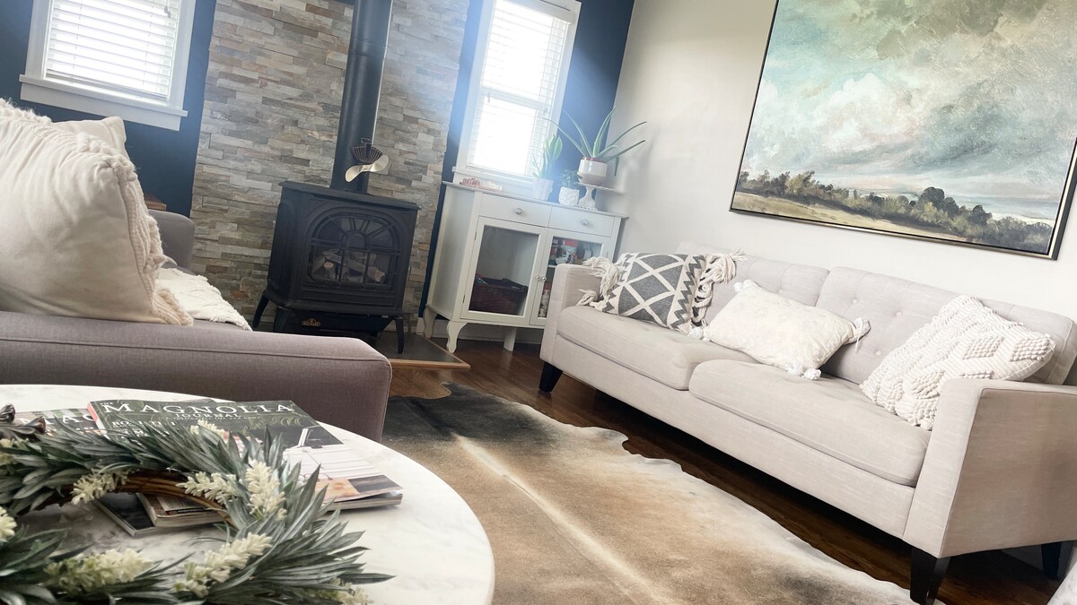 Es tracta d'uns 2000 peus quadrats d'espai habitable per a tu. Tenim una entrada comuna al garatge. El lloguer és per a la planta baixa només amb la teva pròpia porta. Aquesta suite soterrani té finestres grans i molt d'espai, així com una cuina. Tenim una estufa de llenya per donar l'ambient acollidor del camp. Aquest és un allotjament més nou amb un entorn relaxat, televisor intel·ligent de 60 polzades amb reproductor de DVD, dutxa de vapor i taula de billar per al teu gaudi. Zona molt tranquil·la envoltada per un camp de palla, amb foguera i zona d'estar.
