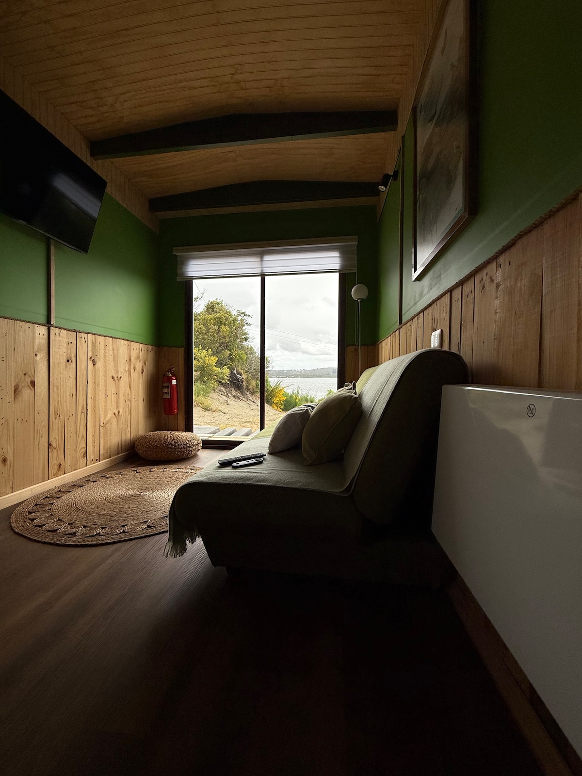 Diviértete con toda la familia en este alojamiento con estilo, minimalista y tranquilo, rodeado de naturaleza a 3 minutos de la playa con avistamientos de aves como cisnes y flamencos, recinto privado y cerrado para mayor privacidad y sensación de relajo, ofrecemos servicio adicional de tinaja de agua caliente en el bosque ideal para pasar la tarde o noche solo escuchando el sonido de los pajaritos, escríbenos y obtén más información ℹ️ ¡te esperamos! (Hasta 3 personas)