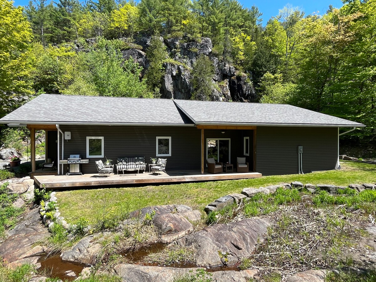 Retira't al cor de Muskoka i gaudeix de la tranquil·litat del riu Muskoka. A l'interior hi ha una cuina oberta, una zona de menjador i sala d'estar i dos dormitoris que donen a un jardí boscós amb una terrassa exterior. Fes encendre la barbacoa al pati davanter o torrar dolços al costat del riu al teu nou oasi a la vora de l'aigua. ☃️❄️ Des de pistes de patinatge sobre gel, festivals d'hivern i trineus fins a trineus amb gossos, raquetes de neu i passejades amb trineu: l'hivern a la casa rural és emocionant, tranquil i bonic. Demana'ns recomanacions!