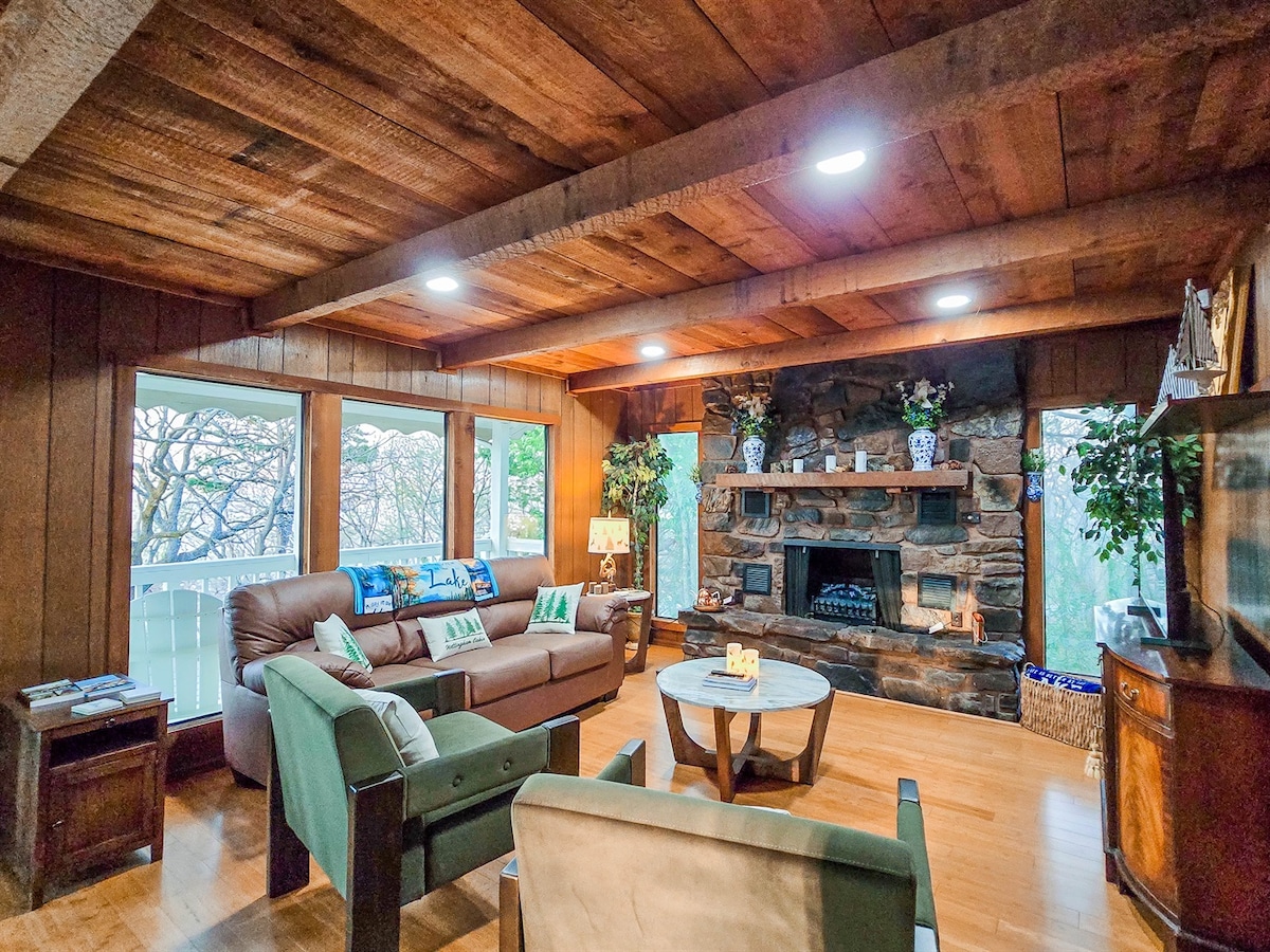 Amagat i elevat en els arbres, la privacitat per a una parella t'espera en aquesta unitat. Escapa't, relaxa't i rejuveneix en aquesta unitat temàtica d'spa. 600 peus ofereix una paret sencera de finestres que capturen les aigües brillants del llac i la teva posta de sol única. La sala d'estar ofereix un sofà de mida completa i un televisor intel·ligent de 55 polzades. Estigues connectat amb WIFI gratuït. Cuina totalment equipada per cuinar. El llit king i la banyera de hidromassatge es troben a la vista del llac. Gaudeix de qualsevol temporada amb aire condicionat/calefacció, ventilador de sostre i llar de foc moderna a la paret.