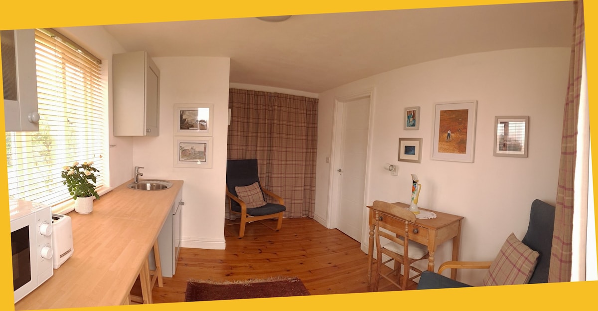 Amb vistes a jardins preciosos, aquest apartament totalment moblat disposa d'una cuina oberta/sala d'estar, dormitori i bany privat. Les instal·lacions inclouen nevera-congelador, rentaplats, fregidora d'aire, microones/graella, vitroceràmica, bullidor, torradora, WIFI, televisor intel·ligent, Amazon Echo, endolls de càrrega USB, sofà llit, llit doble, dutxa de pluja, calefacció central, menjador/jardí privat a l'aire lliure. P per a 2 cotxes. La propietat és un annex de la casa principal, però té una entrada privada independent. Capacitat per a 4 adults. No s'admeten animals de companyia.
