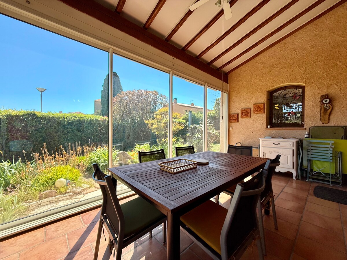Vil·la independent de 140 m2 orientada al sud, (a 4 km de l'aeroport i a prop de l'estació de tren de Hyères les Palmiers). A 8 minuts amb cotxe de les platges més boniques i del centre de la ciutat. Es caracteritza per la tranquil·litat del barri amb la seva piscina privada, terrassa, gandules, barbacoa i planxa de gas. Cafetera Nespresso. Per a nadons: bressol, banyera, orinal, trona. Lloguer de dissabte a dissabte de mitjans de juny a mitjans de setembre