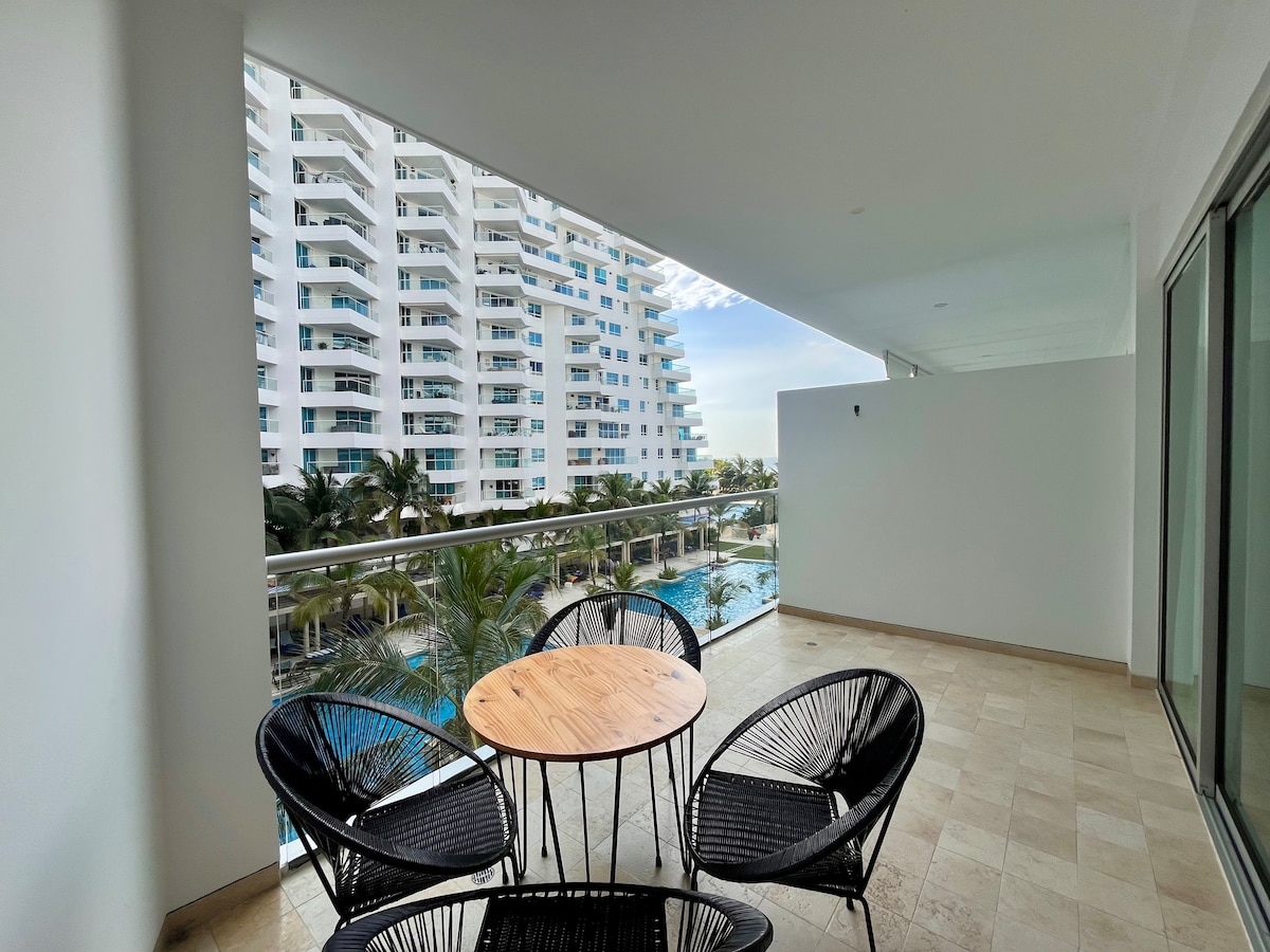 One bedroom apartment with an amazing view on the 20th floor. Located less than 10 min. away (by taxi) from the Old City, and around the building you can find tons of places to eat or drink anything you want… It's your perfect hub for your next visit to Cartagena! The building has a 24/7 concierge and an outdoor swimming pool (as well as another one for kids) as well as sauna, jacuzzi and gym. Please keep in mind that only registered guests are allowed to access the building.