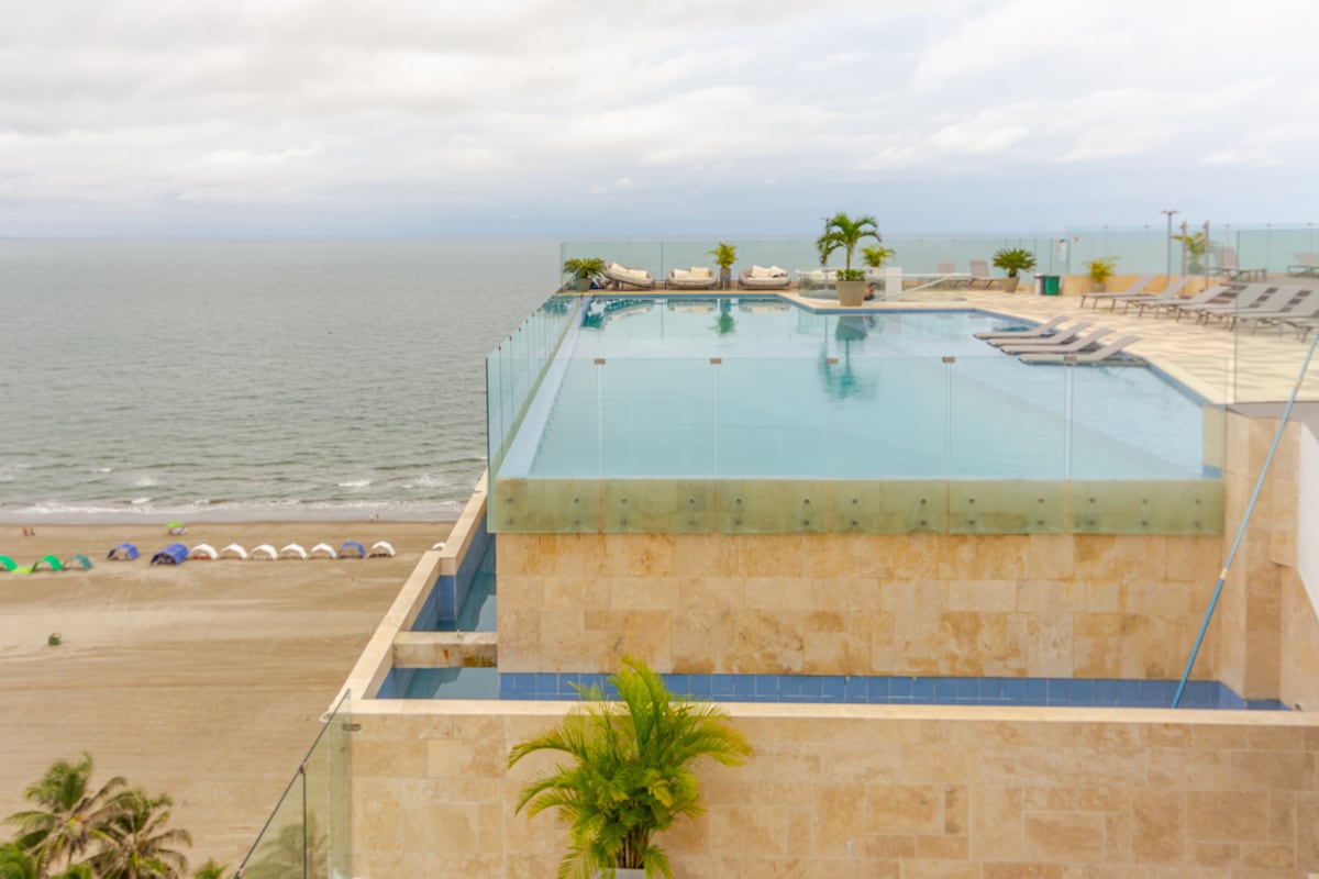 Relaxa't amb tota la família en aquest allotjament tranquil. Ideal per a parelles amb nens petits. Connectat amb l'oceà i la platja més bonica de Cartagena. Comunitat tranquil·la. Relaxa't al paradís. Postes de sol precioses. Vistes increïbles. Parc infantil per a nens. Contempla la posta de sol relaxant-te als jacuzzis. 4 piscines. Llit «king size» i un llit doble. Situat a la zona més luxosa de Cartagena: Serena Del Mar, Colòmbia.