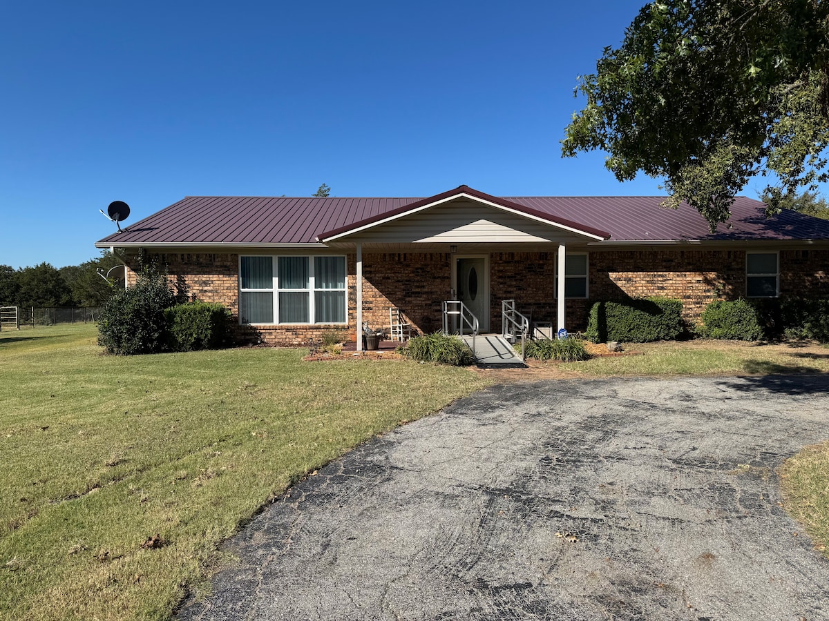 Casa remodelada amb 78 hectàrees privades, incloent-hi un llac privat. Perfecte per a reunions familiars. Habitació amb llitera, llits king size i queen size. Gaudeix de l'aire lliure: fauna salvatge, foguera i barbacoa. 1,5 milles de senders privats a la propietat. A 5 minuts del Lake Murray State Park: senderisme, golf i esports aquàtics. Tancat al voltant de la casa per a animals de companyia. Gran refugi contra tornados. Wifi recentment actualitzat a 200 Mbps. Gaudeix de l'aire lliure: un sender de 1,5 milles al voltant de la propietat, pesca, foguera exterior, terrassa exterior coberta amb una gran barbacoa de gas.