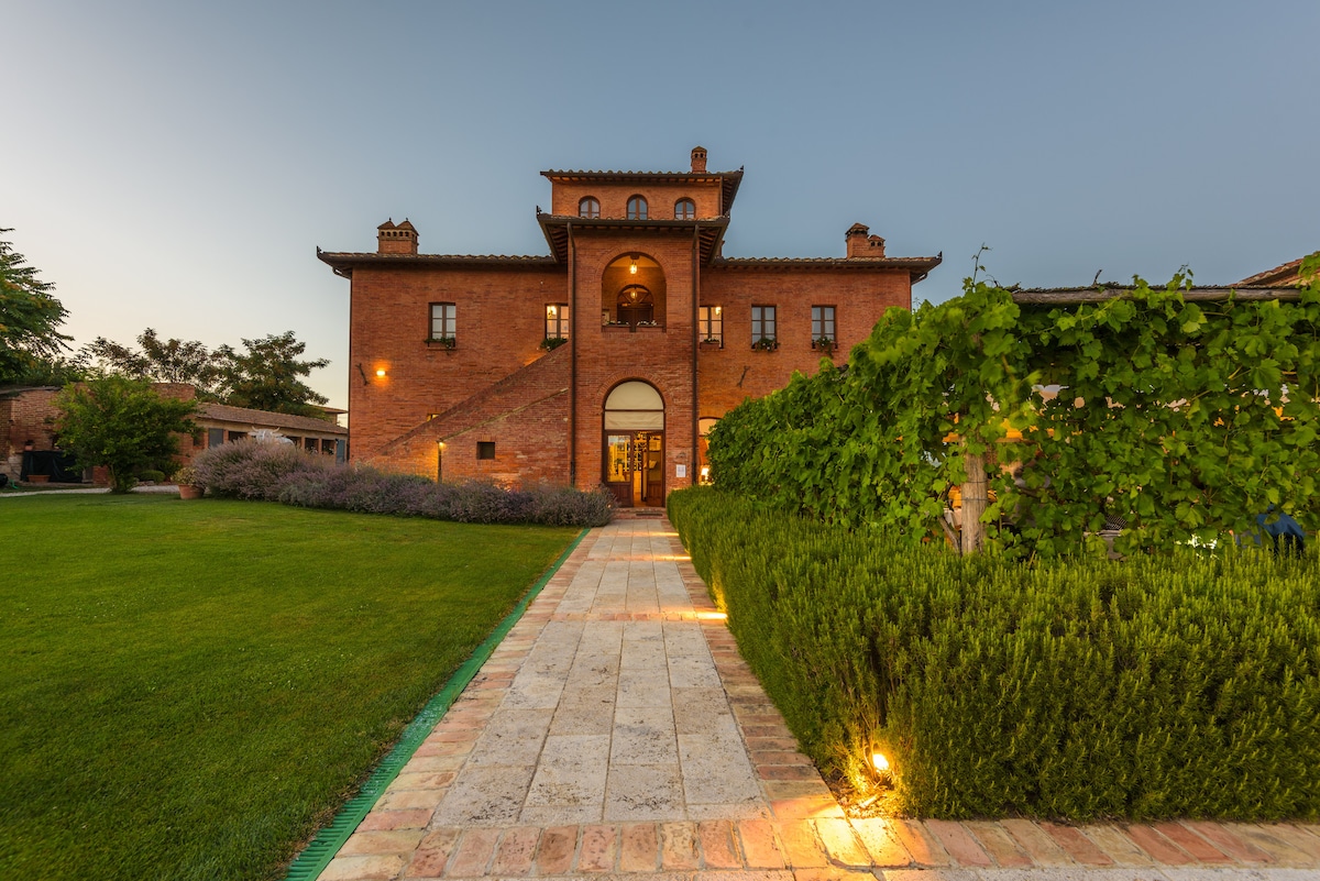 És estrany trobar un lloc que no només sigui romàntic, sinó també històric i realment únic. La Torretta forma part de Toscana a Due, una torre medieval amb un enorme jardí i oliveres, just al cor de San Quirico, amb vistes a la Val d'Orcia. L'edifici de 1000 anys d'antiguitat ha estat redissenyat com una barreja de luxe patrimonial i antiguitat. Amb el nostre servei de conserge únic a mida i una càlida benvinguda a la vida de la nostra família, compartim les nostres tradicions, la història i els tresors amagats de la Toscana amb tu.