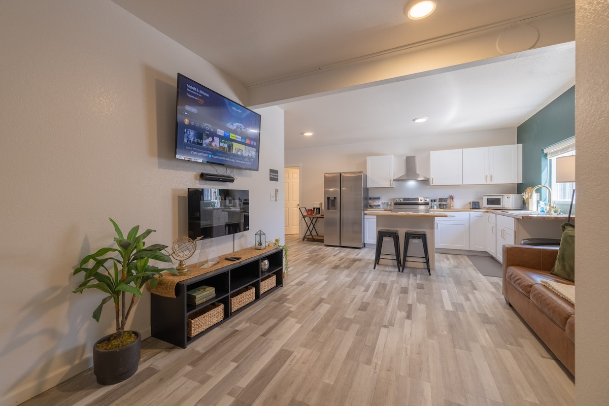 Vine a sentir-te com a casa al nostre cèntric i elegant refugi! El nostre allotjament ofereix un llit «king size», una cuina/menjador complet i un espai d'estar acollidor, el nostre allotjament és una escapada relaxant per sentir-se com a casa després d'un llarg dia. La nostra unitat és una casa intel·ligent totalment equipada amb entrada sense claus, televisor intel·ligent i sistema de calefacció i refrigeració amb control remot. Gaudeix d'aquesta ubicació cèntrica amb fàcil accés al centre històric de Casper i a les seves nombroses botigues i restaurants. Vine a ser el nostre hoste i deixa que t'ensenyem una estada fantàstica!