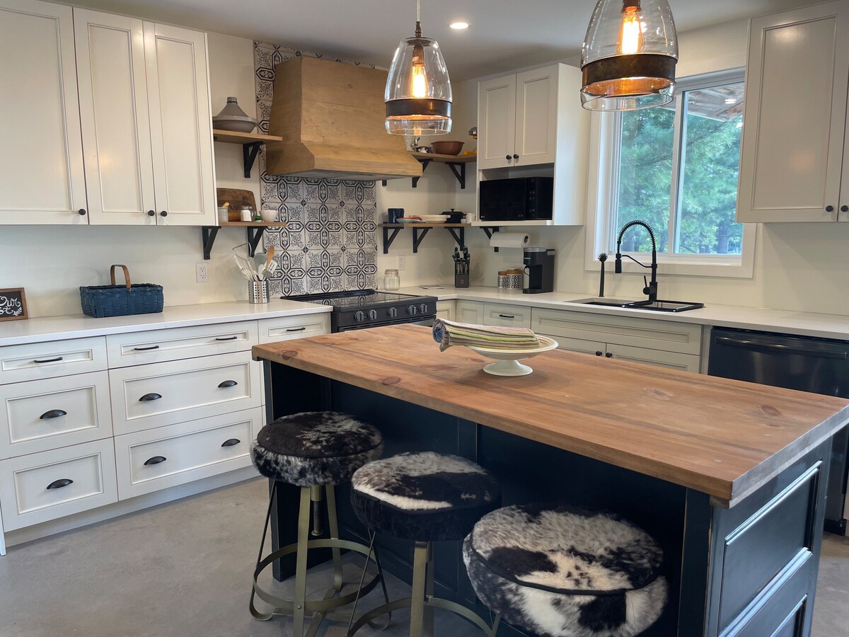 Et donem la benvinguda a la nostra casa rural a primera línia de mar situada en una zona tranquil·la de Wakefield, en una propietat de 2 hectàrees. La casa rural de dos nivells de 1800 metres quadrats ha estat dissenyada amb cura per integrar-se amb la natura amb grans finestres del terra al sostre per tot arreu. Vine a relaxar-te i recarrega't a la natura. Hi ha moltes activitats per fer: nedar des del moll, canoa/caiac, peix, bicicleta, golf, esquí, explorar el parc Gatineau, el Nordik Spa, etc. (CITQ#304057. Pagem tots els impostos sobre vendes i ingressos als governs provincials / Fed)