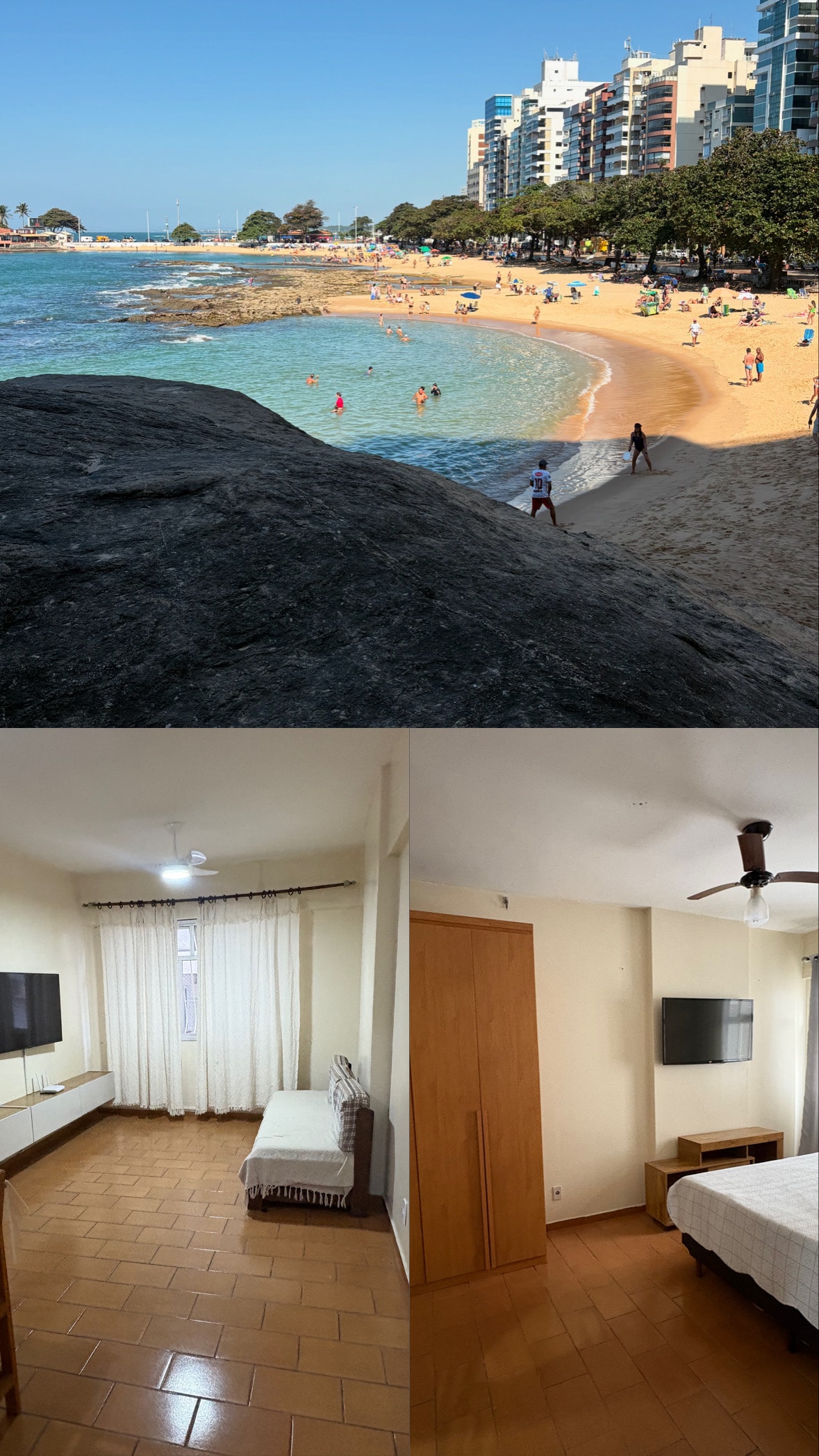 Pis acollidor i espaiós, sol del matí, vista frontal i permanent al mar. Amb capacitat per a un màxim de 06 persones (02 sofàs llit, 01 llit doble i matalàs addicional) situat entre les platges: Praia de Areia Preta i Praia do Riacho. Conserge les 24 hores, ascensor, aparcament i una vista espectacular. Pis amb decoració vintage per proporcionar tota la teva comoditat i benestar. Possibilitat de programar el transport des de l'aeroport /estació d'autobusos fins a Guarapari i visites turístiques a la regió.