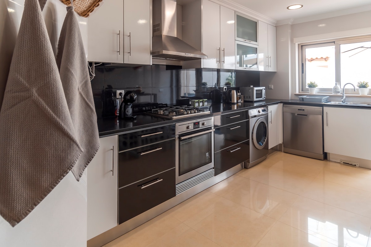 Un apartament de dos dormitoris d'estil modern acabat de renovar amb unes vistes espectaculars de l'oceà Atlàntic i el pintoresc poble de Nazaré i els seus turons, situat a Sitio, a un pas del Big Wave Lookout, així com del poble de Nazaré i les seves platges, ja sigui veure sortir el sol amb un cafè o la posta de sol amb una copa de vi al balcó, quedaràs fascinat pel teu entorn. El pis és perfecte per a parelles i famílies de vacances, treballadors a distància, estades llargues