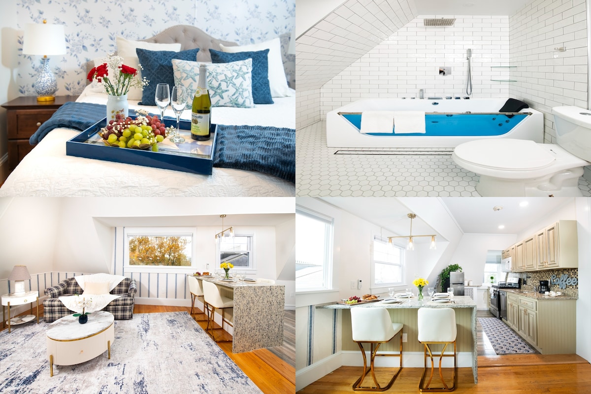 Aquest lloc tranquil i cèntric és una casa rural moderna d'un dormitori, assolellada i espaiosa, situada al cor de l'històric Wakefield. Estem a minuts de moltes platges de RI. Passeja cap avall fins a un parc encantador al riu Saugatucket i després travessa l'encantadora passarel·la fins a la ciutat. Aquí trobaràs una gran varietat de restaurants, cafeteries i gelats, a més d'un excel·lent teatre comunitari, ioga i botigues interessants. Relaxa't dins d'aquest allotjament ple de llum o asseu-te a la terrassa amb vistes als jardins i a la ciutat.