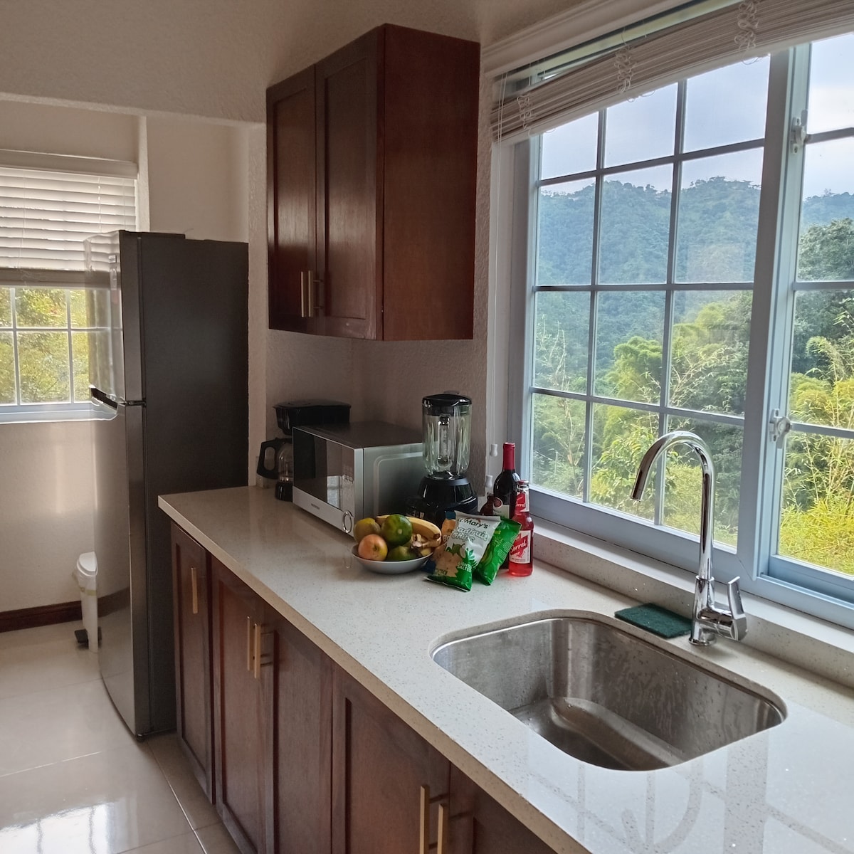 Sent-te com a casa en la nostra propietat de 3 dormitoris i 3,5 banys en una comunitat tancada de Cherry Garden, a pocs minuts de Hi-Lo i Fontana. L'espai té capacitat per a sis persones i ofereix una piscina al terrat, unes vistes panoràmiques i un disseny modern. Els hostes gaudeixen de wifi d'alta velocitat, aire condicionat, una cuina equipada, una zona de treball, instal·lacions de bugaderia, serveis públics de reserva, aparcament i seguretat les 24 hores. Perfecte per a una estada còmoda i sense preocupacions a Kingston, reserva ara!