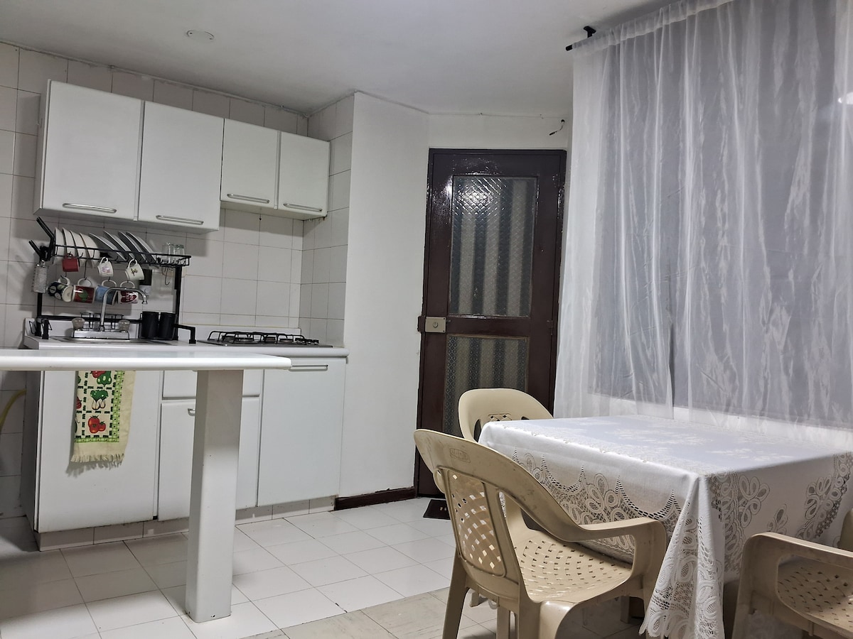 Apartaestudio de 28 m2 situat al cor de la ciutat de Manizales, a prop del Teatre els Fundadors, la Catedral de Manizales, el Centre Històric, el Centre Comerciales Parc Caldas i els Fundadors. A l'allotjament pots gaudir amb els teus animals de companyia, tens una cuina completa disponible amb tots els estris, rentadora per a estades llargues, WIFI, televisor amb aplicacions per veure pel·lícules i sèries, jocs de taula, nevera àmplia, bany amb dutxa calenta, xampú i sabó corporal.