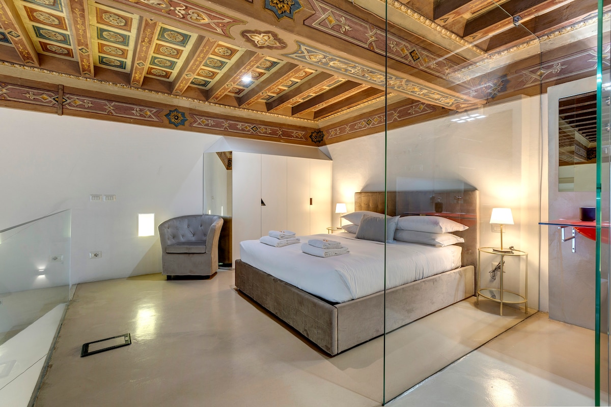 El pis (que abans era un convent i un estudi d'artistes) es troba al cor de Florència, entre el Duomo i l'Estació Central. A la primera planta, amb els seus 70 metres quadrats repartits en dos nivells, és el lloc ideal per conèixer la ciutat i inspirar-se. És el lloc ideal per als amants de l'art i la cultura, de fet, l'apartament també és una petita galeria d'art exclusiva per als hostes que s'allotgen allí. I 'ideal per a una o dues persones, també per a viatgers de negocis