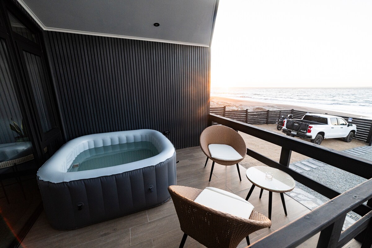 Descobreix la costa del Maule com mai abans. Vista a l'oceà amb una façana totalment vidriada de 14 metres de llarg amb finestrals del terra al sostre que fan que la vista sigui un espectacle de 24 hores. En cas que necessitis més dormir, només has de baixar les cortines opaques i estaràs bé. El loft disposa d'1 llit doble, sofà llit, terrassa protegida al vent sud, internet Starlink, cuina totalment equipada i un elegant bany de pedra i fusta. A 10 km al sud de Curanipe, a 300 metres de la carretera principal i a uns passos de la platja.
