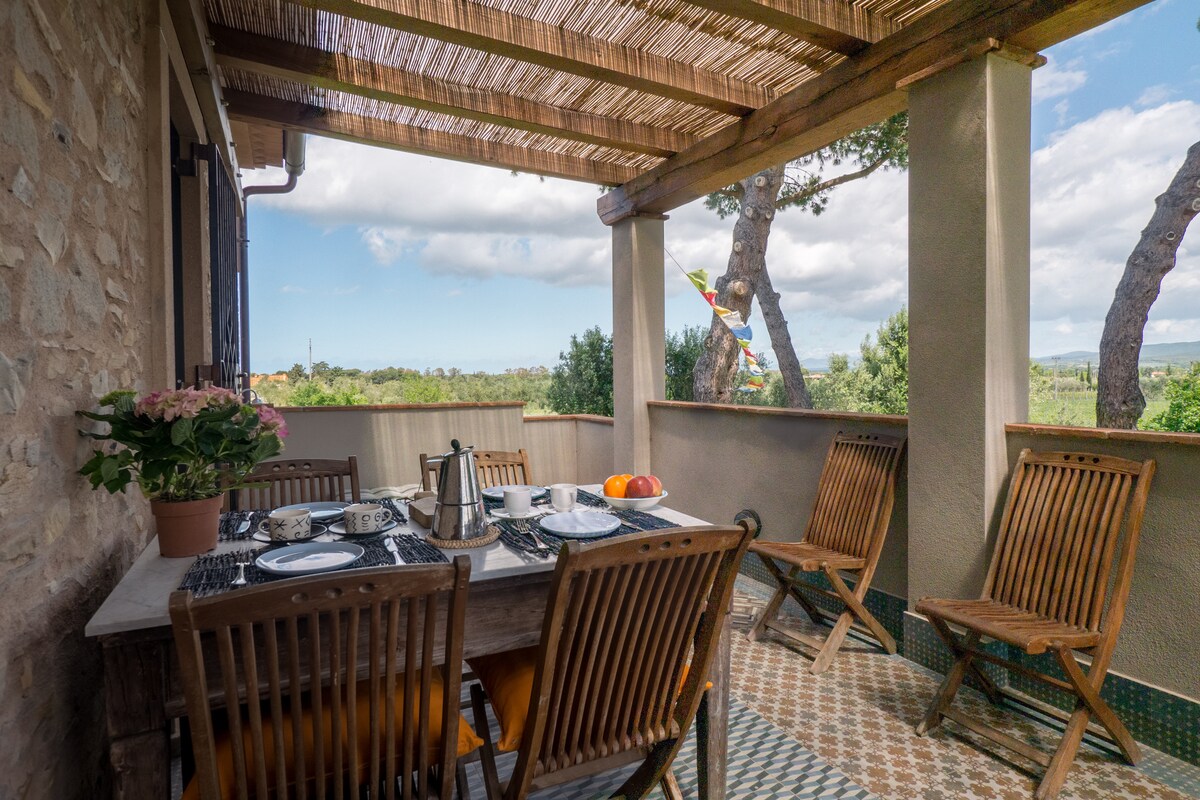 La Casa del Poggio (casa al turó) es troba als turons de Castagneto Carducci i forma part de la nostra granja ecològica. Està immers en un camp tranquil envoltat d'oliveres, vinyes i boscos i gaudeix d'una vista preciosa del mar i del castell de Castagneto Carducci. Al mateix temps, la seva posició permet arribar al poble en només 10 minuts a peu i a les platges de Marina di Castagneto en 10 minuts amb cotxe o autobús.