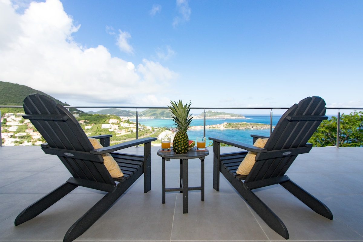 Et donem la benvinguda a Villa Solandra, una casa de luxe 3BR/3BA davant de l'oceà amb piscina privada a Indigo Bay. Gaudeix de postes de sol romàntiques i èpiques, aquesta escapada al costat d'un penya-segat combina la vida interior i exterior amb vistes panoràmiques al mar i a la badia, dos grans balcons davant del mar i interiors de disseny. Gaudeix d'una cuina inspirada en un xef, suites king de luxe amb bany privat, jardí privat a pocs minuts de platges, restaurants, Simpson Bay i l'emblemàtic avió de Maho. Perfecte per a famílies, amics o escapades romàntiques.