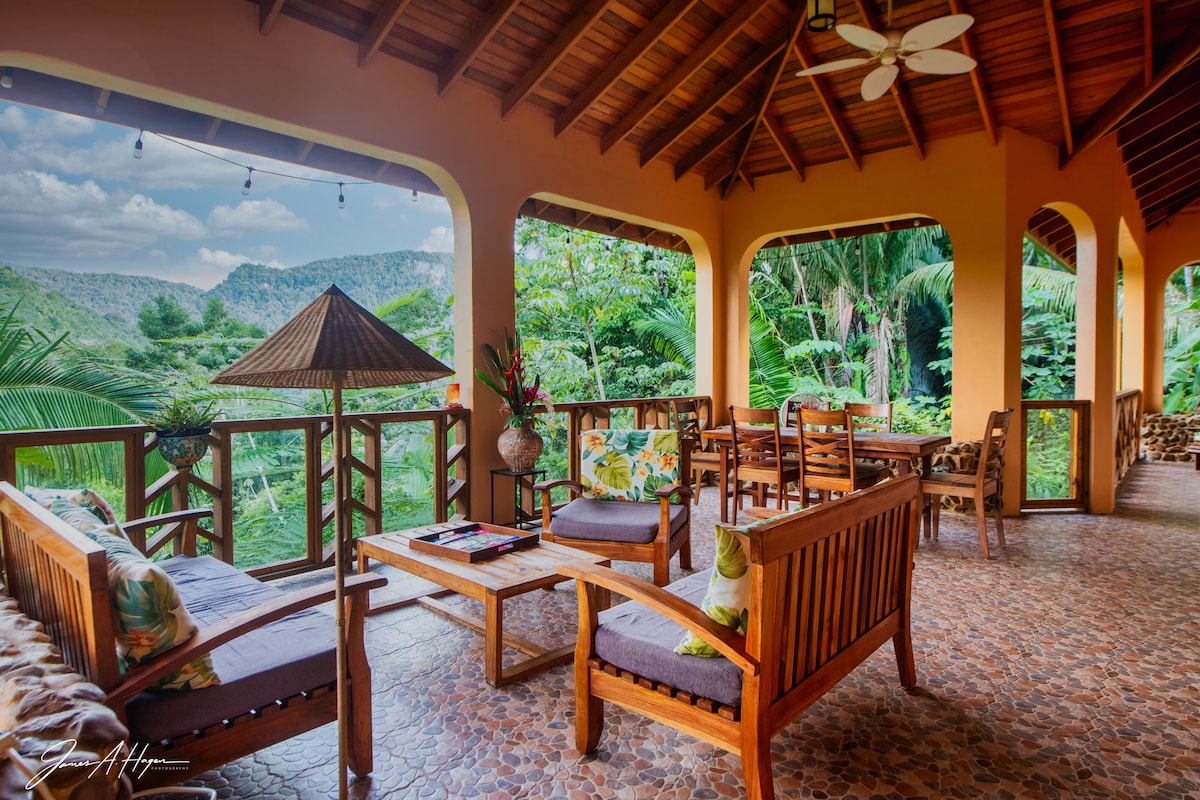Two private suites available. They rent separately. This listing is the 1 bedroom upstairs unit. It can sleep 2 adults and has blow-up mattress available for kids. The second story suite has one bedroom and one full bath with tub/shower combination. Has a full kitchen and living dining room with new furnishings. It has a 500 square foot patio with ranch and jungle views, seating and gas grill. Rent both units for groups up to 6 adults, 2 kids.