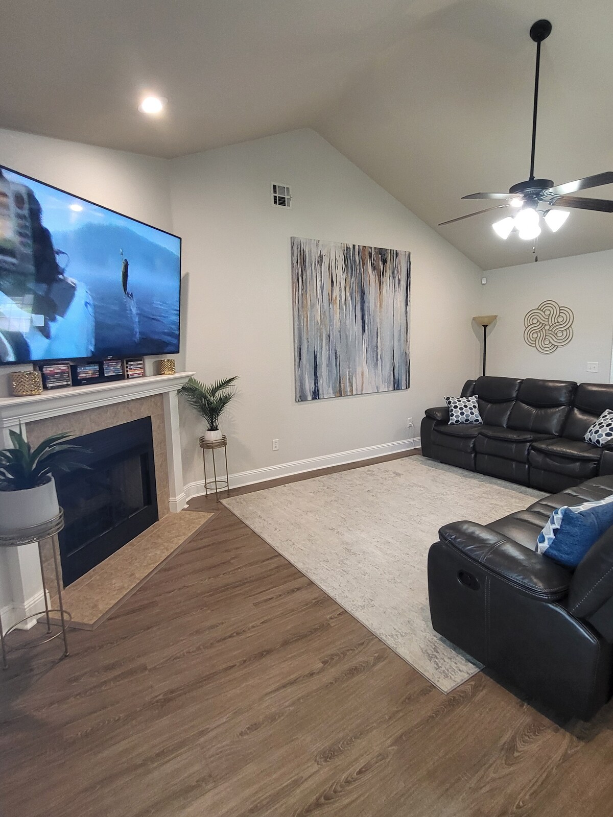 Make memories with your loved ones in a newly renovated open concept home with private pool in a big fenced in backyard that is centrally located and tucked away on a quiet dead-end street. The living room features a vaulted ceiling and large 70" TV with couches that recline, making it the perfect spot to relax. The home is close to Walmart HQ, Kohler mountain bike trails , wedding venues such as The Ravington and Kindred North, restaurants and grocery stores.